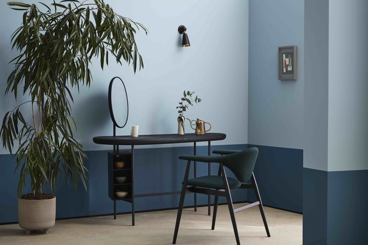 ორ ფერში შეღებილი კედლები შთამბეჭდავად გამოიყურება. ჩვენ ვიცავთ “დრეს კოდის” წესს და კედლის მესამედ ვღებავთ მდიდარი ფერით, რათა გამჭვირვალე ტონმა ჰაეროვნებისა და სივრცის განცდა შექმნას.