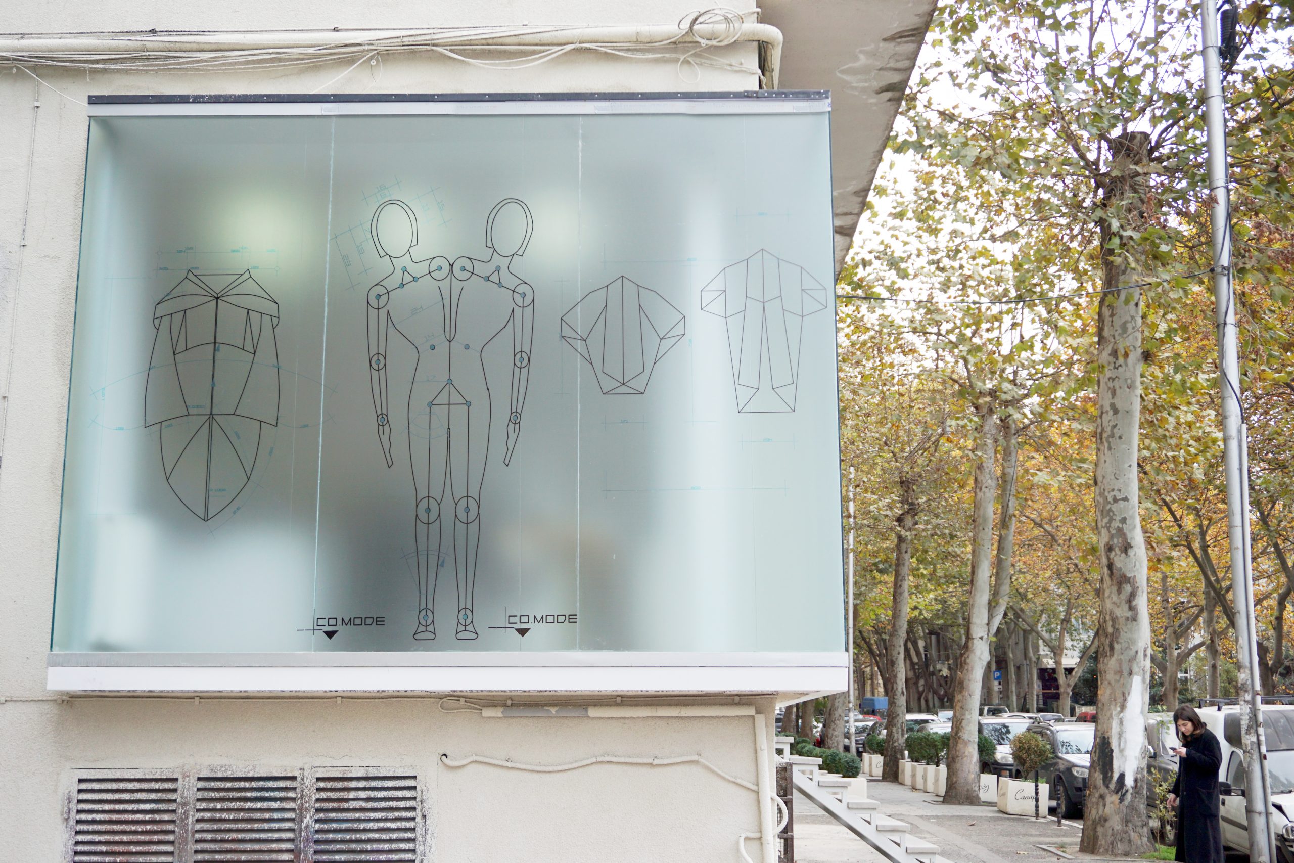 მაღაზიის პროექტებზე მუშაობა ძალიან საინტერესოა. ჩვენ ამ ორი მაღაზიის პროექტში, აქცენტი პრეზენტირებულ პროდუქტზე გავაკეთეთ. ყველაფერი დანარჩენი ფონად დავტოვეთ. ასევე მნიშვნელოვანი იყო, თუ როგორ აღიქმებოდა ქუჩიდან მაღაზიის შიდა სივრცე, ჩვენ გვინდოდა რომ მომხმარებელი გარედანვე მიხვედრილიყო თუ რას სთავაზობს მას მაღაზია. კომოდის შემთხვვაში შემინულ ფასადზე გამოდიოდა სამკერვალო, რომელიც გაუმჭვირვალე თარგებისა და ადამიანების ნახაზებით დავფარეთ.