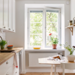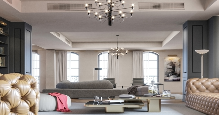 საინტერესო დეტალია თითბერის აქსესუარები ინტერიერში. მაგალითად, ნატურალური ხის იატაკში და ბუხრის მოპირკეთებაში ჩაყოლებული თითბერის კანტები, ამავე ფერის განათებები და სახელურები.