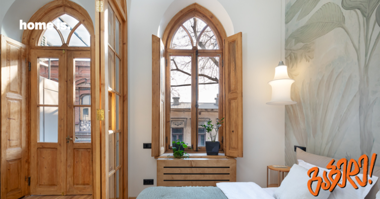 თეთრსა და ღია ჭაობისფერ ტონებში გადაწყვეტილ ოთახს ხის დარაბები ამშვენებს, რომელსაც, თავის მხრივ, ჰარმონიულად ერწყმის ხის პარკეტი, ღია ტანსაცმლის კარადა და ტუმბო. ოთახში არსებული მწვანე მცენარე ბუნებასთან კავშირის შეგრძნებას კიდევ უფრო გვიმძაფრებს.