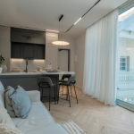 ამ საკმაოდ მრავალფეროვან და უჩვეულო ინტერიერში ძველისა და თანამედროვე დიზაინის გაერთიანებაა მოცემული. დარაბები ხის იატაკს ორგანულად ერწყმის, მათ კი აგურის კედელი იდეალურად ეხამება. მიუხედავად სხვადასხვა ტექსტურებისა, ოთახი საბოლოო ჯამში, ძალიან მყუდროა.