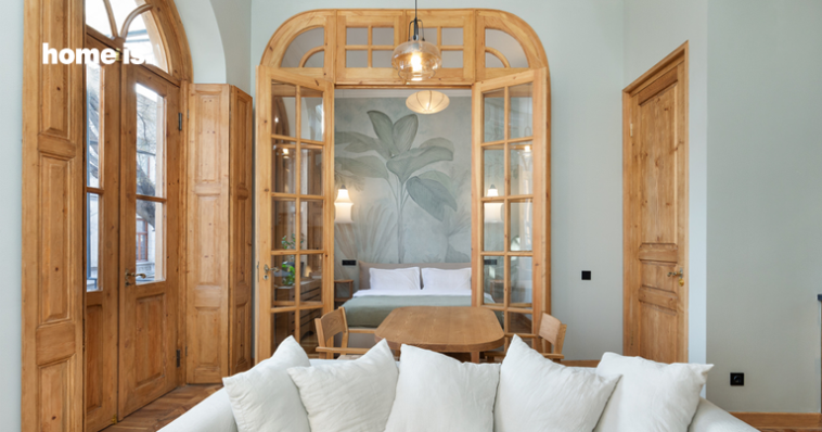 ამ ბინის კონცეფციის შემუშავებისას მთავარი როლი ავთენტურმა ფანჯრებმა, მაღალმა ჭერმა და დიდი რაოდენობით ბუნებრივმა განათებამ ითამაშა, რომელსაც ხის დეტალები განსაკუთრებით მოუხდა, რადგან ამ შტრიხმა პროექტში ბუნებრივი და თბილი შეგრძნება შემოიტანა. ხის პარკეტი, დარაბები და სხვა დეტალები ინტერიერში ბუნებასთან ურთიერთობის განწყობასა და თბილ, მყუდრო გარემოს ქმნის. საბოლოო ჯამში, ბინაში სიმსუბუქე, ბუნებრიობა, სიმშვიდე და ჰარმონია იგრძნობა, რაც სწორედ ხის მასალის სიმრავლით არის განპირობებული.