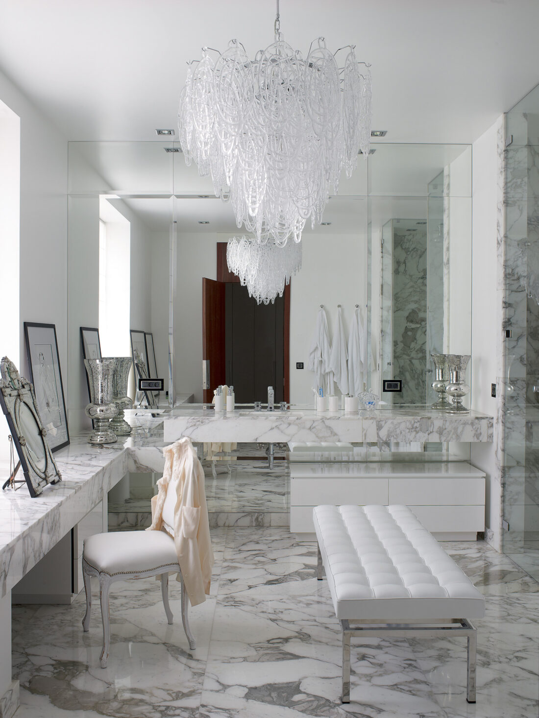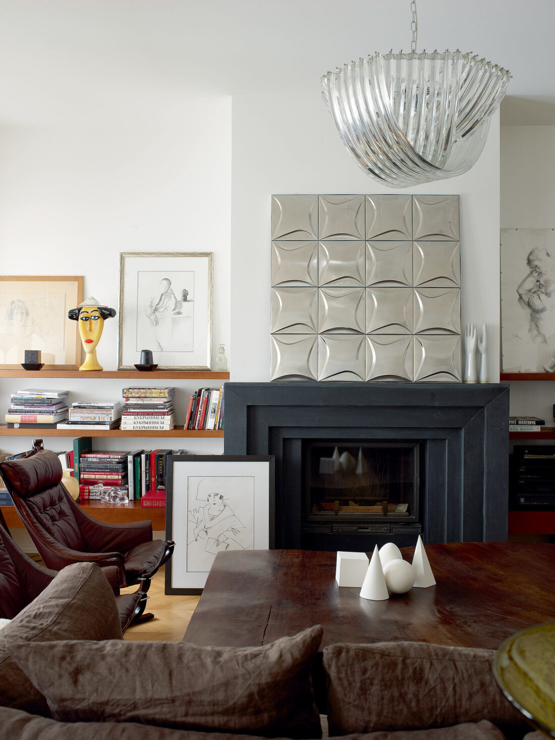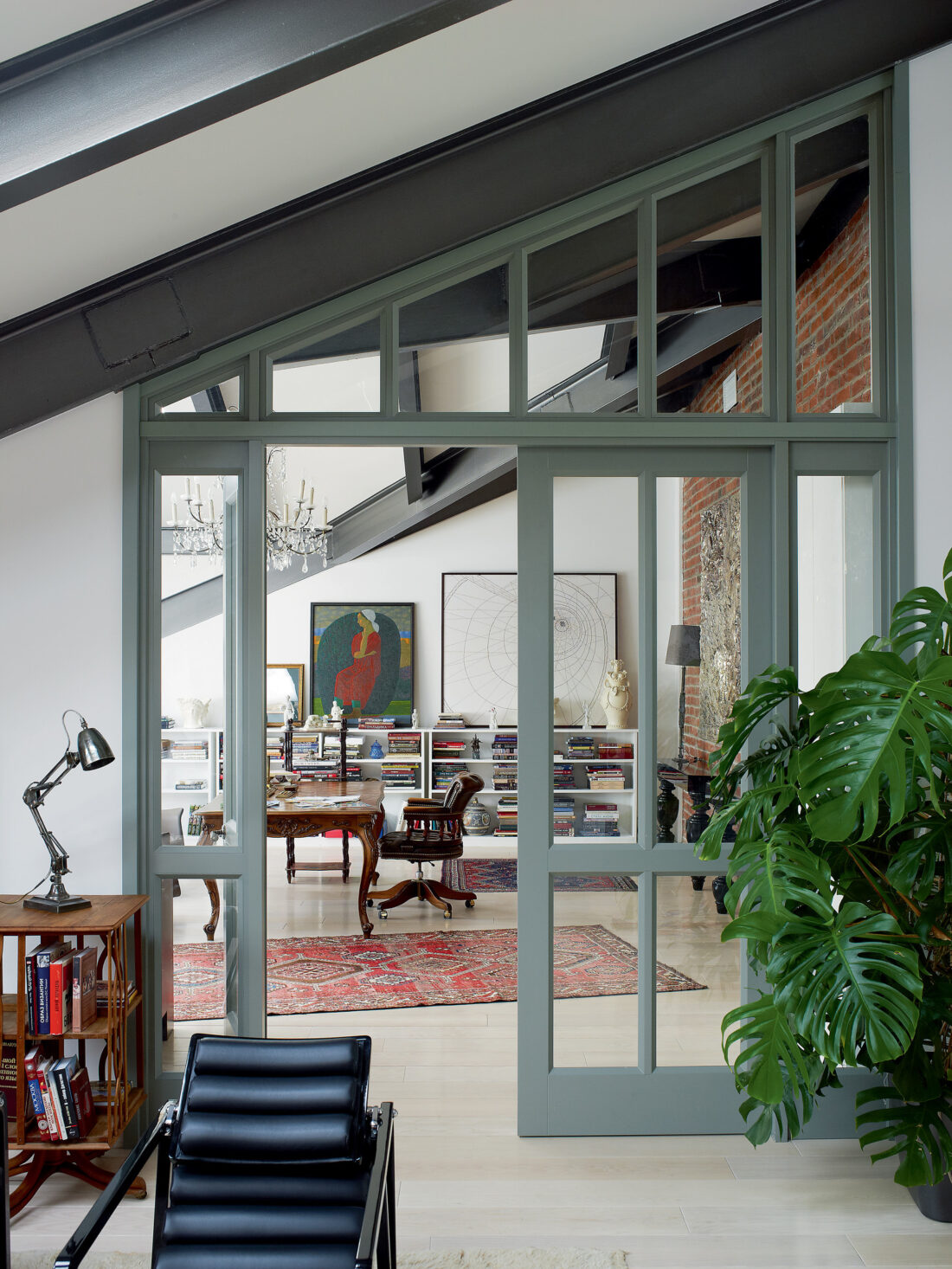 კედლებისა და იატაკის ნეიტრალური ფერი, რომელიც აგურის კედლებისა და სხვენის გარდა მთელს სახლში ერთნაირია, ბინას ვიზუალურად კიდევ უფრო ზრდის და სურათებისთვის დასაკიდ დამატებით სივრცეს ქმნის. მონოქრომული სივრცე მათი სისტემატური გადაადგილების აუცილებლობას ხსნის. მოხერხებულობისთვის ბევრი ნამუშევარი სპეციალურად დაპროექტებულ კონსოლებზე განათავსეს, რომლებიც ოთახების მთელ პერიმეტრზეა გაშლილი. ბინა იმგვარადაა მოწყობილი, რომ მთელი ინტერიერის შეცვლა აქ მყისიერადაა შესაძლებელი.