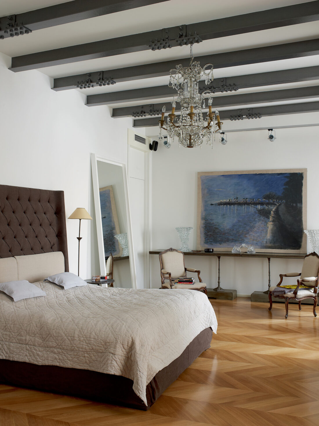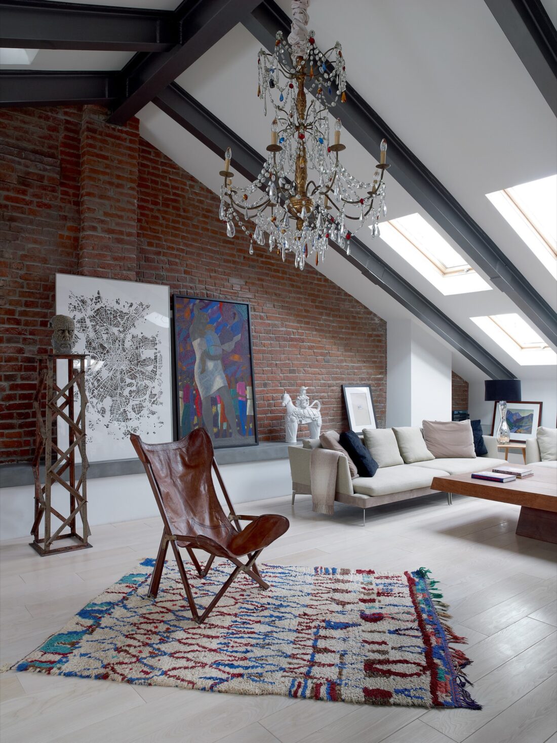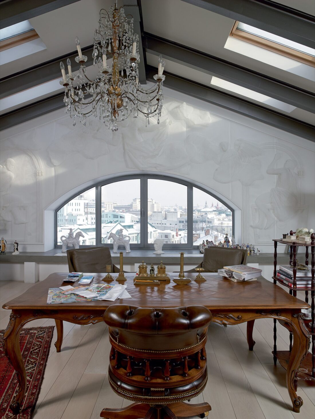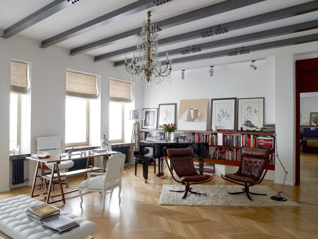 ბინას ძველი სახლის ბოლო სართული უკავია, ამიტომ სხვენის შემოერთება და მშენებლობის დაწყება გადაწყდა. ინტერიერი მისმა მეპატრონემ, ცნობილი ბერნდის, Gourji-ს შემქმნელმა თითქმის მყისიერად, ერთ ამოსუნთქვაზე მოიფიქრა. ეს ძალიან თანამედროვე და თავისუფალი სივრცე უნდა ყოფილიყო, ხოლო არქიტექტურული გადაწყვეტილებები სახლის კლასიკური სულის შესატყვისი.