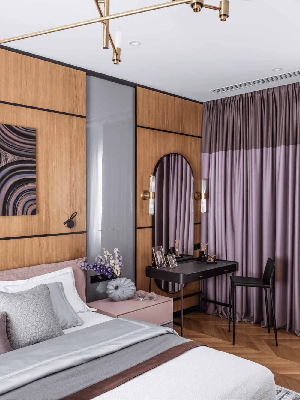 იმისთვის, რომ ლავანდისფერის ინტერიერში გამოყენების მაგალითები უფრო ნათლად წარმოიდგინოთ, ქვემოთ მოცემულია რამდენიმე შთამაგონებელი ვარიანტი, სადაც სწორედ ეს ტონი ქმნის ძირითად აქცენტს.