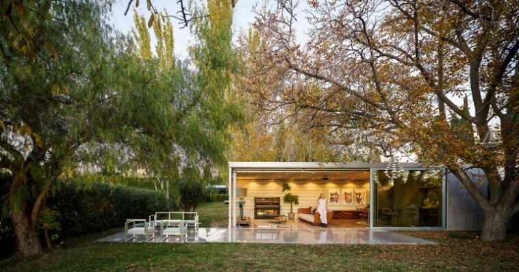 სახლი ძველი ფარდულის რენოვაციითა და პროექტის გადასხვაფერების შედეგად აშენდა. ტერიტორიაზე აიგო დამატებითი შენობები, რომლებიც თავდაპირველ პროექტს ეხამება და ბუნებას სრულიად ერწყმის. პროექტის ოთხი პავილიონიდან თითოეული განსხვავებულ არქიტექტურულ სტილს წარმოადგენს. ხეები, ლანდშაფტი და სახლიდან გადაშლილი ხედი ცალკე აღნიშვნის ღირსია – აქედან იდეალურად ჩანს სიერა ნევადას მთები, ამიტომ ხედი სეზონთან ერთად იცვლება და მუდამ მშვენიერია. ესპანური ხეები, რომლებიც ეზოში შეგვიძლია ვიხილოთ, სივრცის შემოსაზღვრასთან ერთად სახლს თითქოს დარაჯად უდგანან და მას იცავენ. შენობის ექსტერიერი მისი მფლობელებისთვის ნამდვილად წამალს წარმოადგენს, მითუმეტეს იმის გათვალისწინებით, რომ ქალაქური ცხოვრება ადამიანებს ფიტავს.