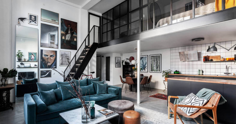 ეს ბინა სტოქჰოლმთან ახლოს მდებარეობს და ის ყურადღებას რამდენიმე სტილის შერწყმით მიღებული დიზაინით იქცევს. ინტერიერში გვხვდება ინდუსტრიული და სკანდინავიური მიმდინარეობების ნაზავი, რაც სივრცეს საკმაოდ გამორჩეულ ხასიათს სძენს.