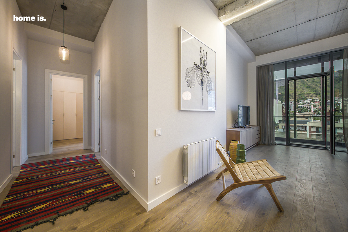 რაც შეხება ბინის ინტერიერს, როგორც აპარტამენტის დიასახლისი გვიამბობს, მას სურდა, რომ სივრცე არ ყოფილიყო ამოვარდნილი საერთო კონტექსტიდან და თანხვედრაში მოსულიყო თავად შენობის ისტორიასთან და მის განახლებულ იერსახესთან. ამ მიზანს კი დიზაინერ მერი ტყაბლაძის დახმარებით მიაღწია.
