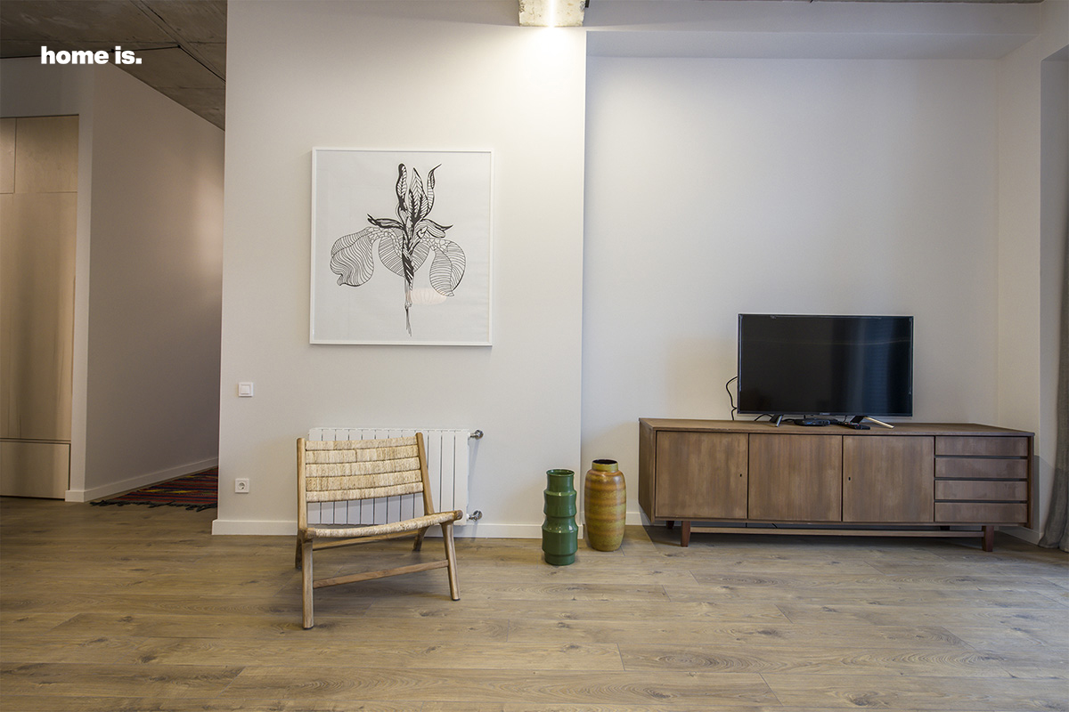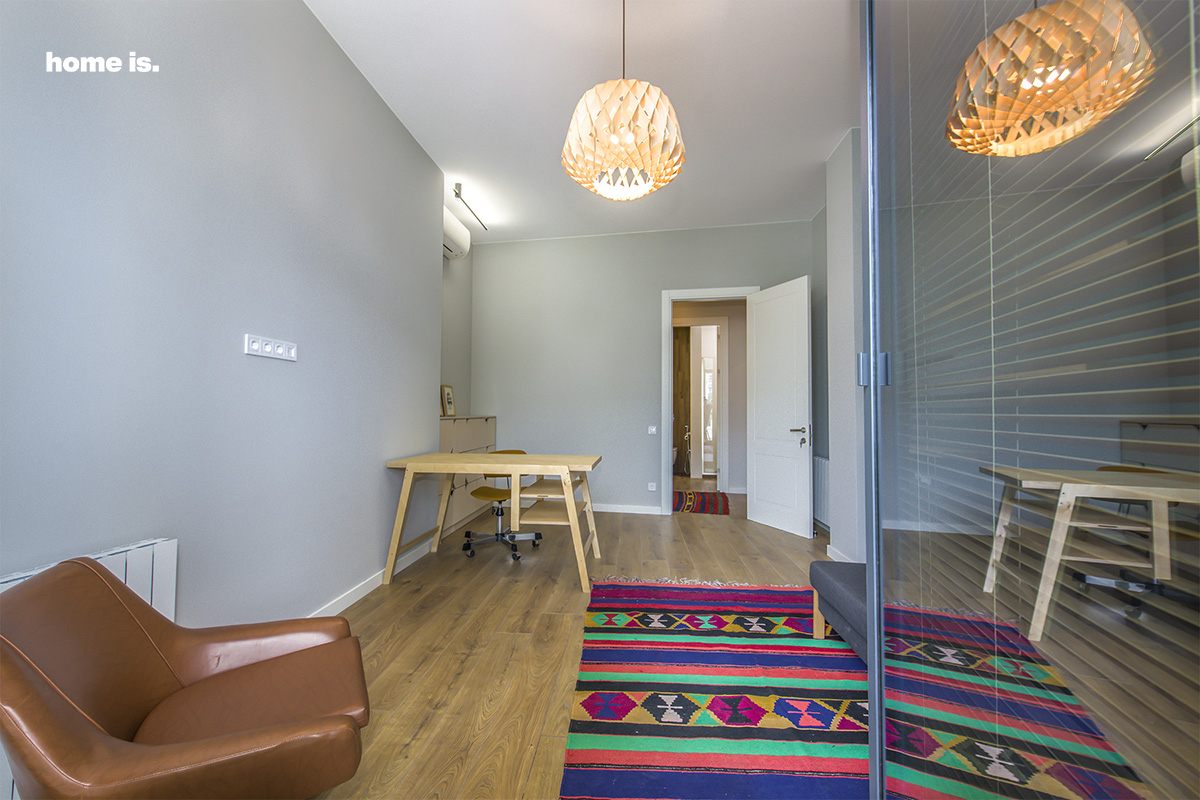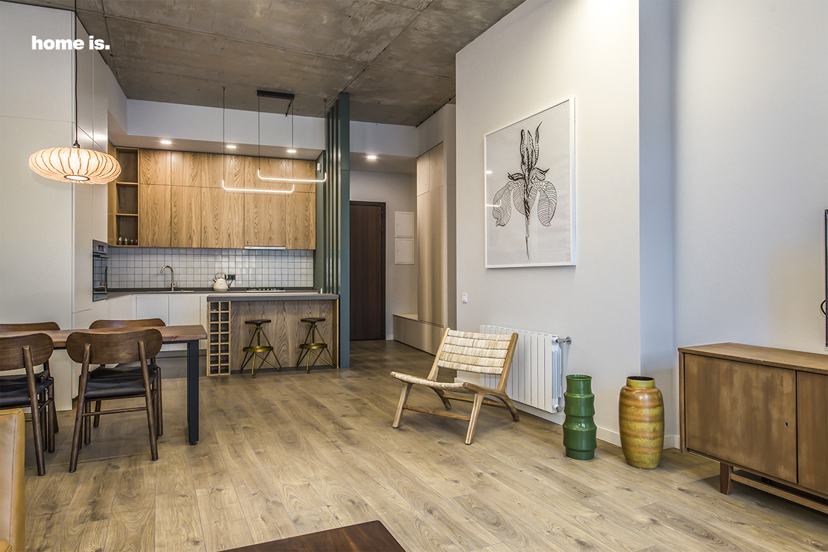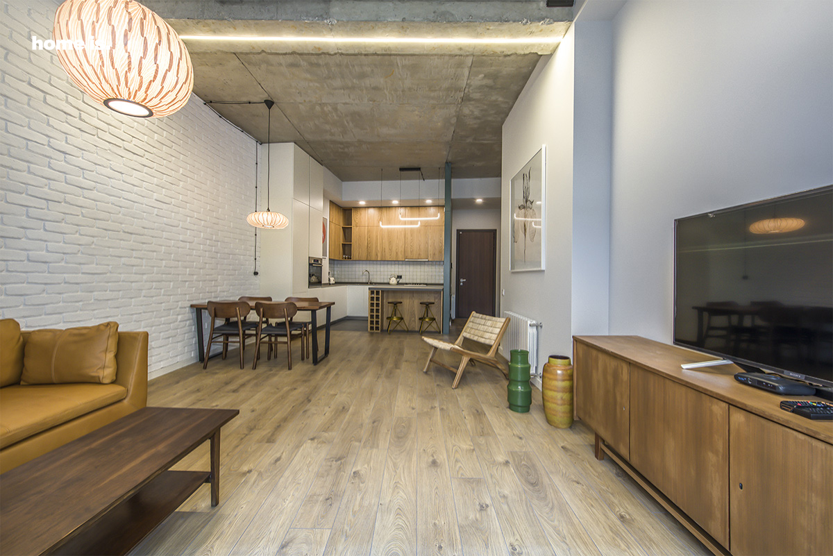 ინტერიერს ამშვენებს სამოციანი წლების გერმანული ავეჯი, რომელიც სრულიად გამორჩეულ ხასიათს სძენს სივრცეს. ცალკე აღნიშვნის ღირსია თანამედროვე ტიპის განათება, რაც აღნიშნული აპარტამენტის ერთ-ერთი უმნიშვნელოვანესი ელემენტია.