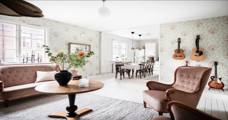 ასეთი ინტერიერის მქონე ერთ-ერთი მყუდრო ბინა ქალაქ გიოტებურგში, მასტუგეტის მაღლობზე მდებარე მცირესართულიან სახლში მდებარეობს. მას შენობის ორი ზედა სართული უკავია (ერთ-ერთი მანსარდაა). სახლს ირგვლივ ვაშლების ბაღი ესაზღვრება, რომელიც გაზაფხულზე ფერებით თვალს, შემოდგომაზე კი მოსავლით გულს ახარებს.