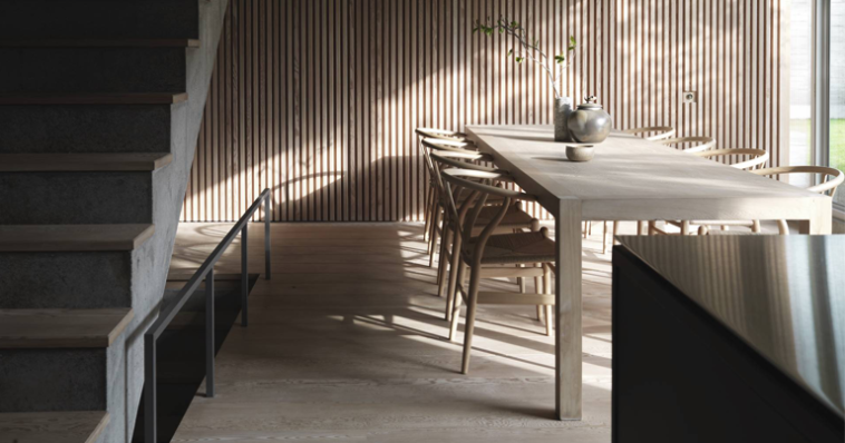სამკუთხედის ფორმის სახლი სამსართულიანია და ასევე მოიცავს ჩაის სმის საცერემონიო ოთახს, რომელიც ტყეს გაჰყურებს და თეატრის სცენის მსგავსი კონცეფციითაა აგებული. ინტერიერი დანიური დიზაინის კლასიკური ნიმუშებითაა გაფორმებული.