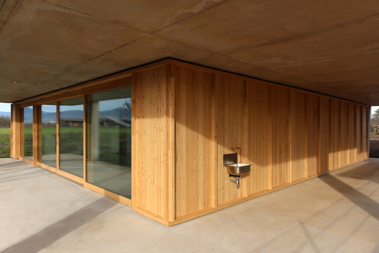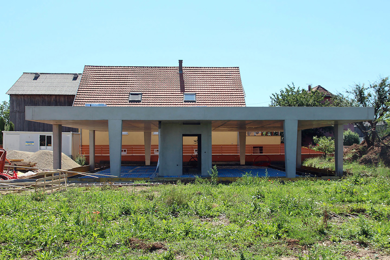 2020 წელს საფრანგეთში, კერძოდ ებერშეიმში ერთი საკმაოდ დახვეწილი და, რაც მთავარია, ფრანგული კულტურისთვის შესაფერისი სახლი აშენდა. ამ სახლს ნედლი ბეტონის დიდი მონოლითური სახურავი აქვს, რომლის ქვეშაც 8 პერიფერიული სვეტი და ორი ცენტრალური ბირთვი ერთიანდება. ერთი შეხედვით, ეს არქაული თავშესაფარია, თუმცა, ამ კედლებს მიღმა სრული თანამედროვეობა იმალება.