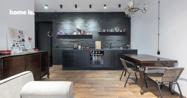 სახლში ერთ-ერთი მნიშვნელოვანი დეტალი სამზარეულოს აგურის კედელია, რომელიც პროექტის ავტორმა დემონტაჟის დროს შემთხვევით აღმოაჩინა. რემონტის მიმდინარეობისას სამშენებლო აგურის ფენა დამუშავდა, შეიღება და ინტერიერს ისტორიული ელემენტი შესძინა, რამაც საცხოვრებლის ავთენტურობა და ინდივიდუალური დიზაინი განაპირობა. შავი კედელი იდეალურად ერწყმის სამზარეულოს ავეჯის შავ ტონალობას და საბოლოოდ, ერთიანი იერსახე მიიღება.