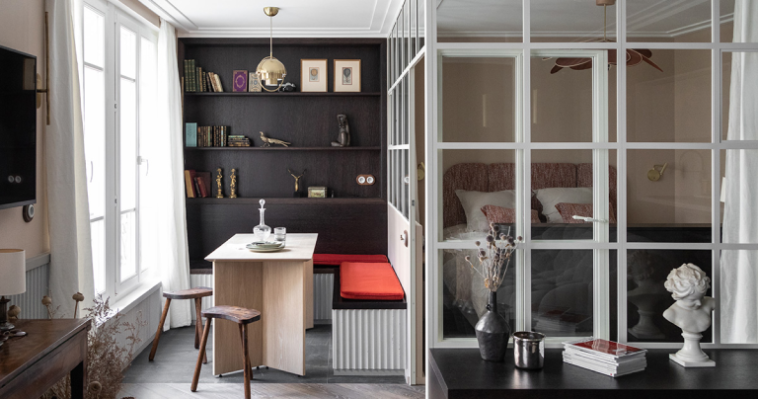 პარიზში მდებარე მიკრო ბინა ფართის სიმცირის მიუხედავად, სწორი ზონირებითა და მიმზიდველი ავეჯის გამოყენებით ქმნის კომფორტულ, ფუნქციურ და დახვეწილ საცხოვრებელს, რომელიც სრულად აკმაყოფილებს მაცხოვრებლების ყველა საჭირო მოთხოვნას.