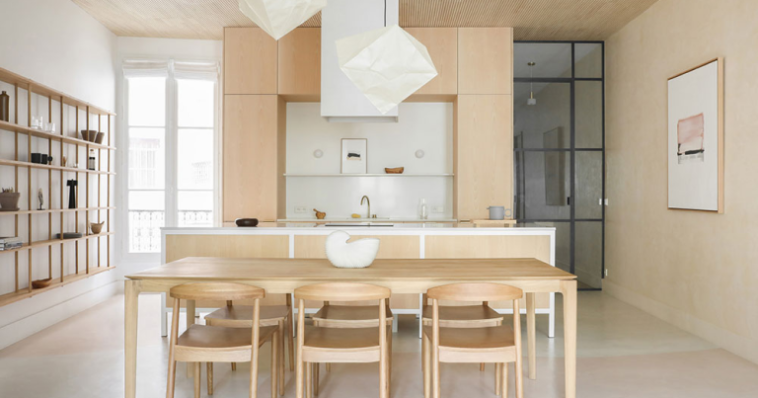 ეს დახვეწილი ბინა პარიზში, 100 წლის წინ აშენებულ შენობაში მდებარეობს და ძალიან თანამედროვედ გამოიყურება. ბინაში ძველებური სტილის მხოლოდ ფანჯრებია, რაც პროექტს სიძველისა განწყობას უქმნის. შიდა სივრცე მინიმალისტურ სტილშია გადაწყვეტილი, ავეჯისა და დეკორაციების სახით კი საინტერესო და თანამედროვე მოდელებია გამოყენებული. დიზაინერებმა აქცენტი ხის, ქვისა და პასტელის მასალაზე და ჩრდილებზე გააკეთეს, რამაც თბილი, მყუდრო და ელეგანტური ინტერიერი შექმნა.