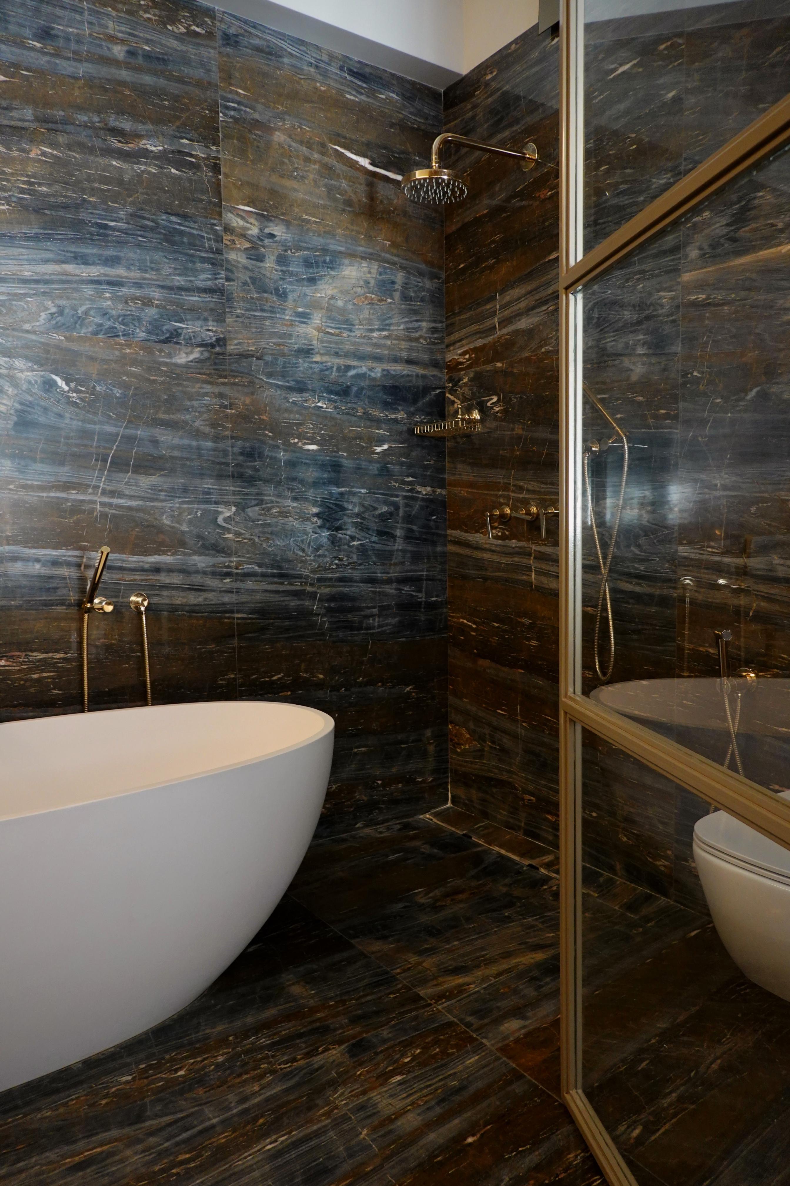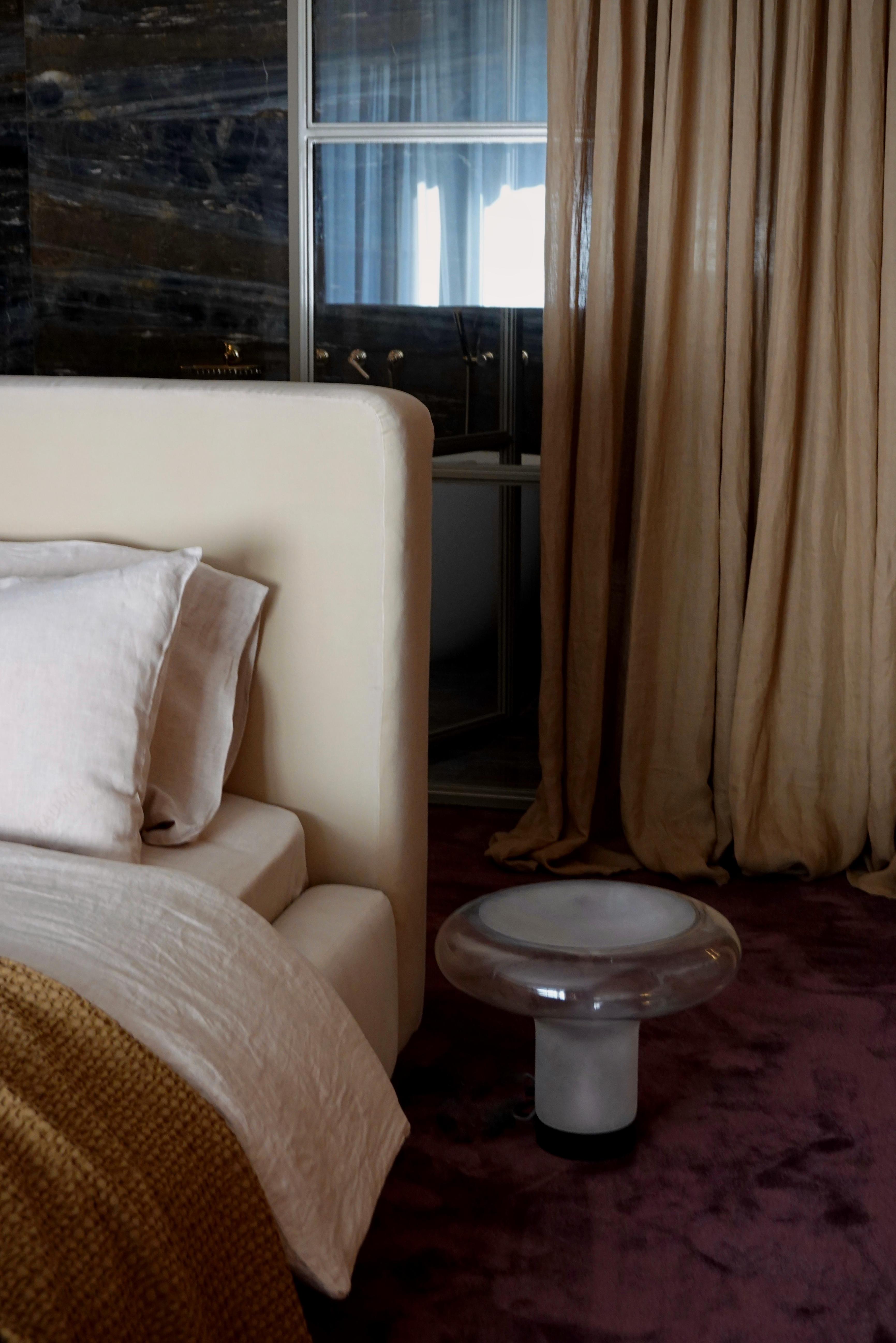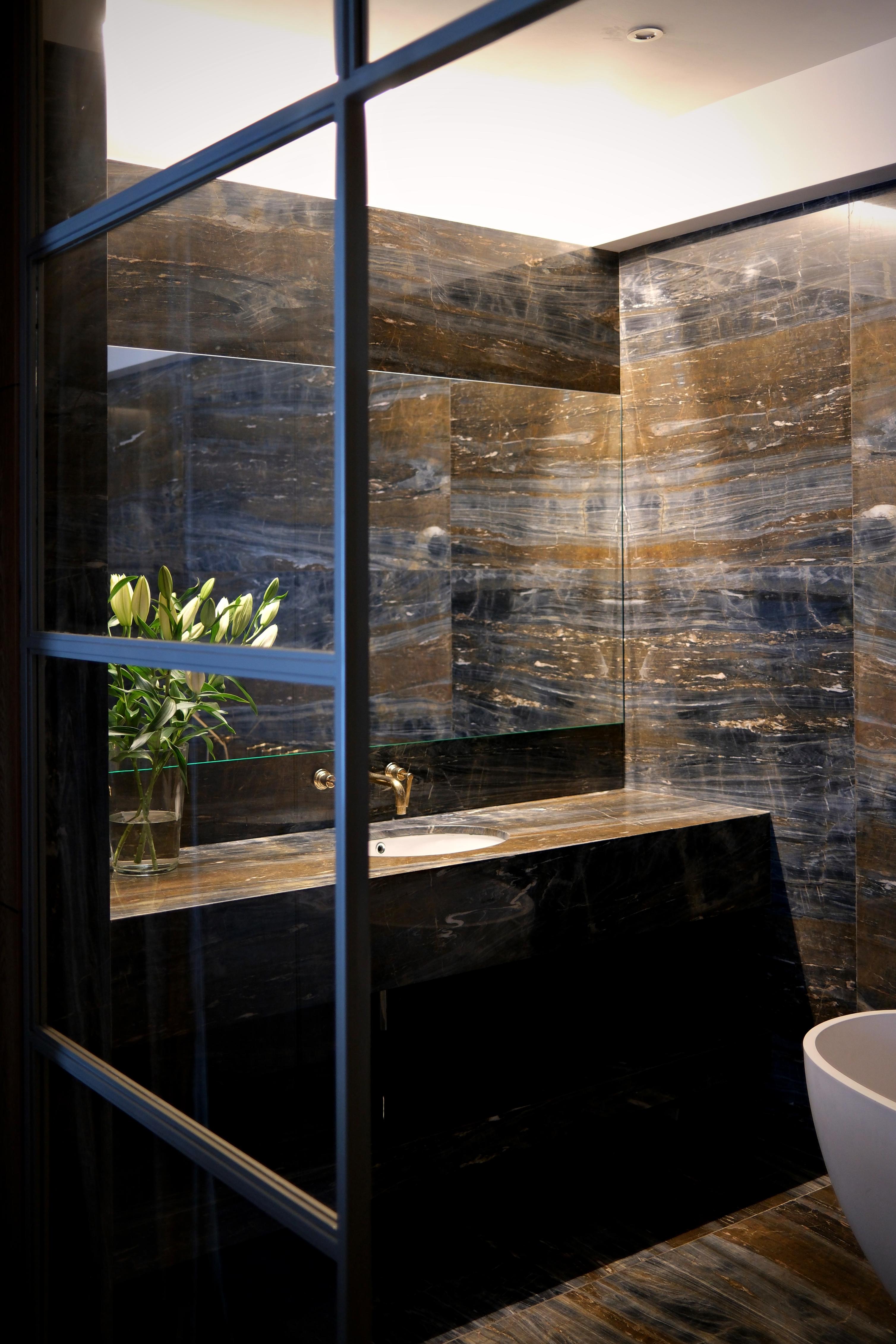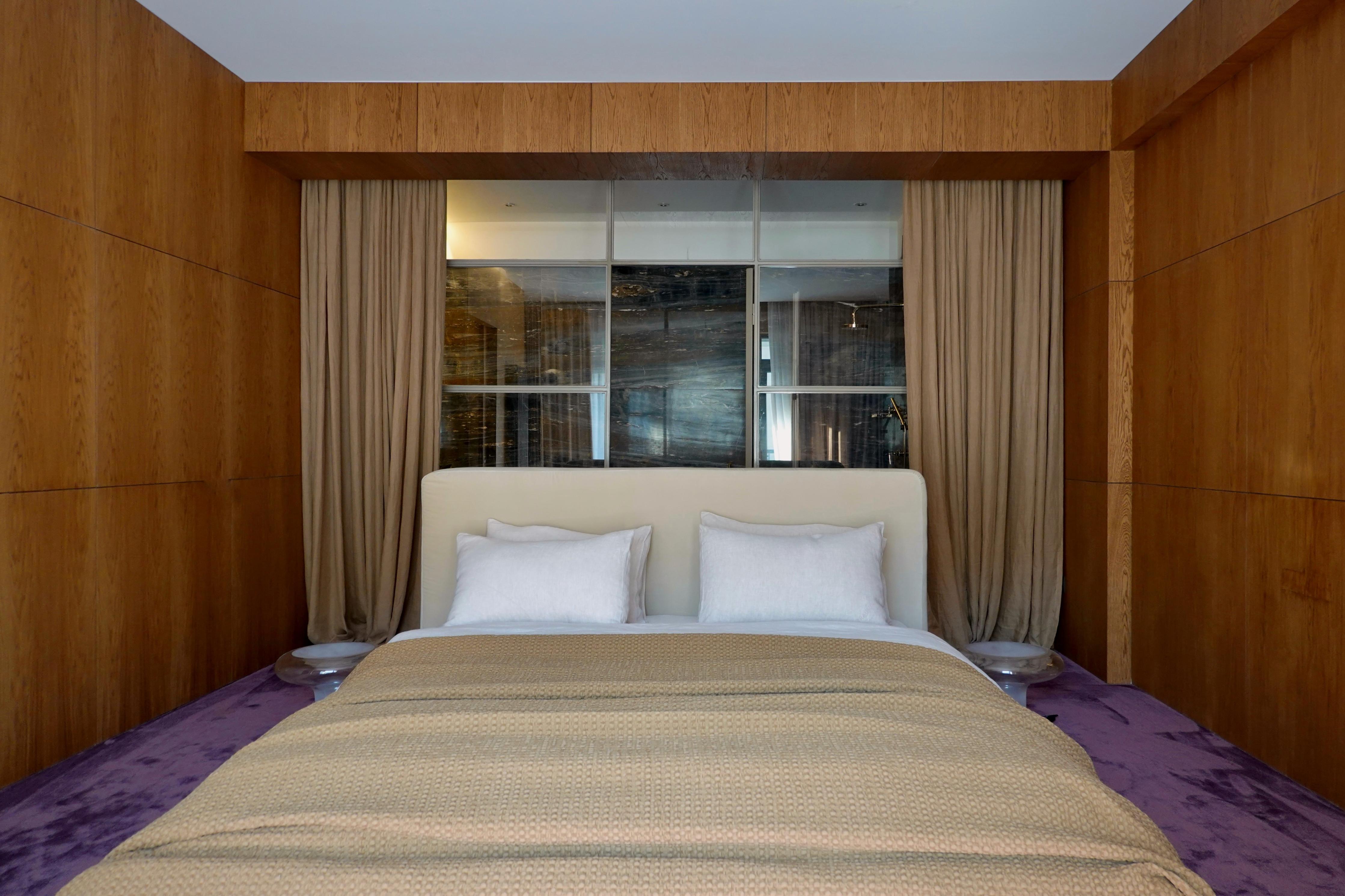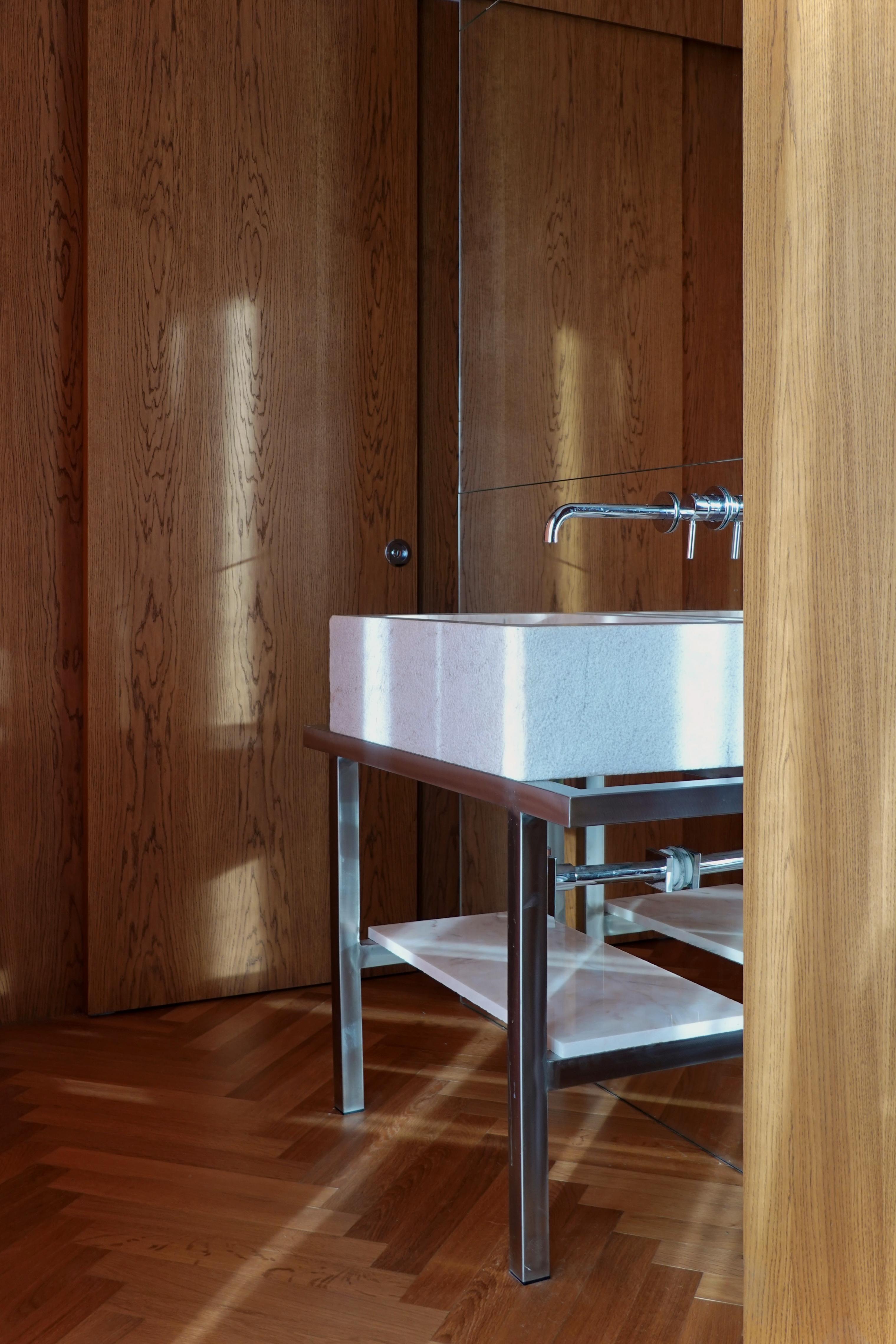 საძინებლებში გვხვდება მუხის პანელირები და ბუნებრივი ქსოვილები, რაც თბილ ატმოსფეროს ქმნის. მთავარი საძინებელი მინის ტიხრით უკავშირდება სველ წერტილს, სადაც ბრინჯაოს დეტალები და მდიდარი ტექსტურები ფიგურირებს, ხოლო ცენტრალურ ელემენტად თავისუფლად მდგომი აბაზანა გვევლინება.