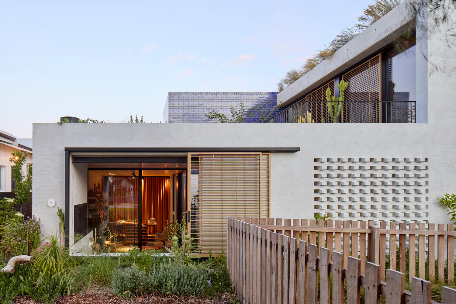 ეს სახლი ეხმიანება მარშალ კლიფტონისა და ჯულიუს ელისჩერის ნამუშევრებს და მათი მხრიდან პერტისთვის (ქალაქი შოტლანდიაში) შესაბამისი არქიტექტურის ძიებას. ამ შემთხვევაში, ეს არის შიდა ეზოს მქონე სახლი, რომელიც სეზონური ბაღების გარემოცვაშია აშენებული. უხეში, თეთრი აგურის ფასადი პერტის მზეს ირეკლავს და უზრუნველყოფს სახლის შემოფარგვლას, რაც საზღვრის შემოღობვის საჭიროებას აქრობს. მოჭიქული ცისფერი აგური მიმდებარე ცისფერ კრამიტის სახურავებსა და შიდა ეზოს ეგზოტიკურობას ეხმიანება.
