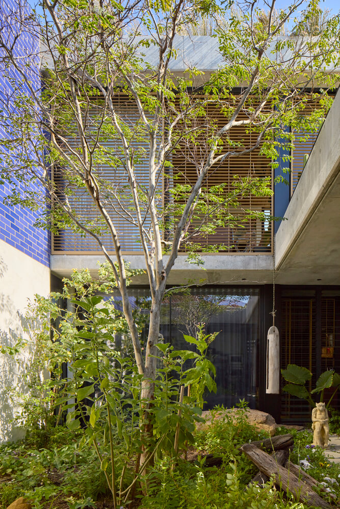აგურის კედლები შენობას აღმოსავლეთ და დასავლეთ მზის ზემოქმედებისგან იცავს, თუმცა კედლის ის ნაწილები, რომლებშიც ცარიელი ადგილებია დატოვებული სახლის შიდა ეზოში ჰაერის ვენტილაციის საშუალებას იძლევა. ყველა სივრცეს ერთნაირი სიღრმე აქვს, რაც, ასევე, ოპტიმალური ბუნებრივი ჯვარედინი ვენტილაციის შექმნას ემსახურება. ამ სტრატეგიას ეხმარება თერმული ბუხარიც, რომელიც კიბეების მწვერვალზე დგას და ღამით ცხელ ჰაერს გამოყოფს. გამწვანებული სახურავები, ორმაგი მინა, მზის პანელები და გადამუშავებული მასალების გამოყენება გარემოსდაცვით მიდგომას აყალიბებს.