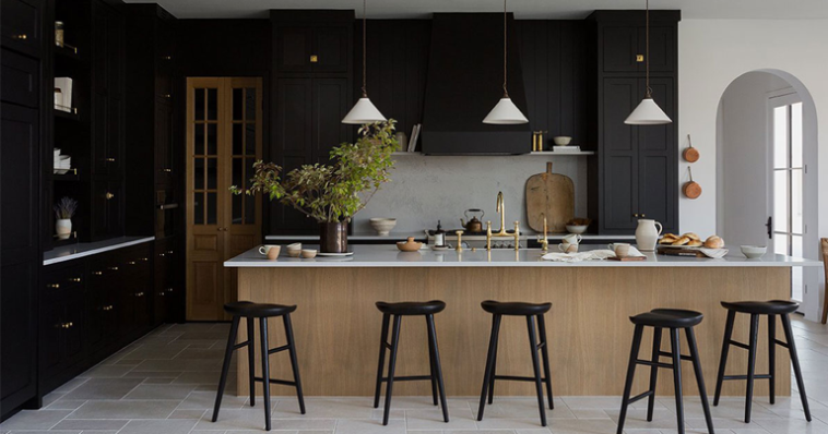 შავი კიდევ ერთო ფერია, რომელიც აქტუალობას არ კარგავს და სხვა ფერებს ადვილად ერწყმის. სამზარეულოს შავი ზედაპირები მარმარილოსთან, ფოლადთან და მუქ ხესთან კომბინაციაში განსაკუთრებით შთამბეჭდავად გამოიყურება.