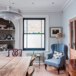 ცალკეა გამოყოფილი სასადილო სივრცეც, სადაც, სამზარეულოს მსგავსად, ბინის მეპატრონეები ყველაზე დიდ დროს ატარებენ. სასადილო მაგიდა და სკამები ხის მასალისგანაა დამზადებული, რაც სახლში ერთგვარ ბუნებრივ და მსუბუქ განწყობას აღვიძებს.
