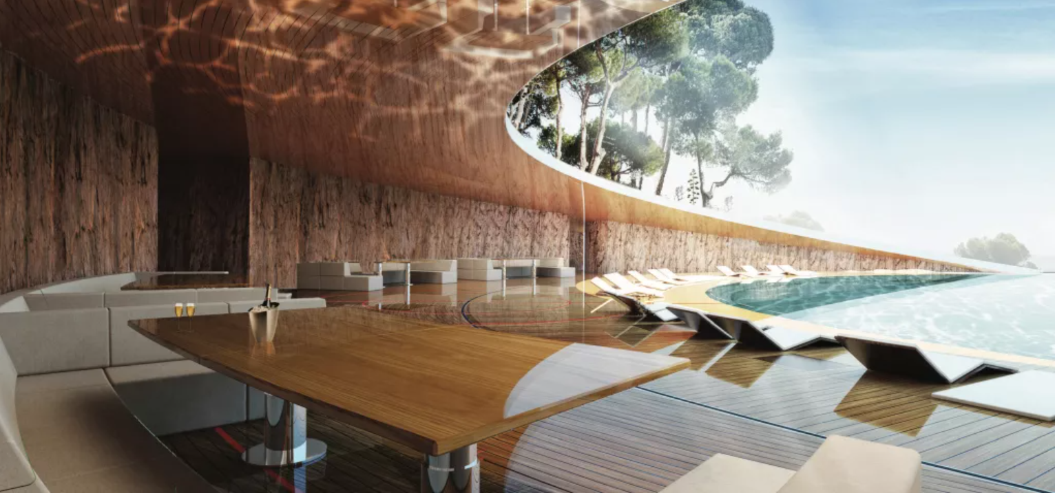 ამ თანამედროვე სასახლეს ჟან მუსის დაპროექტებული კერძო, 2 ჰექტარის ფართობის მქონე პარკი ამშვენებს. სასახლე პიერ კარდენის “ბუშტების” სასახლისგან რამდენიმე მეტრითაა დაშორებული და აერთიანებს რამდენიმე ვილას, რომელთაგან თითოეული 250-300 კვადრატული მეტრის ფართობის მქონეა. თუმცა სასახლის მთავარ მშვენებას მისი “უსასრულო” აუზი წარმოადგენს. ვილიდან საოცარი, 240 გრადუსიანი ხედითაა შესაძლებელი ხმელთაშუა ზღვის სილამაზით ტკბობა.
