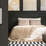 შპალერი ფოთლებით, კომოდი მწვანე დეკორით, ღია მწვანე თეთრეული. სახლის ყველაზე წყნარი ადგილისთვის მწვანისა და თეთრის კომბინაცია შესანიშნავია არჩევანია. შეგიძლიათ საძინებლის კედლები ზეთისხილისფრადაც შეღებოთ.