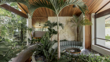 სახლის მისაღებ ოთახში გვხვდება ღია ფერის კედლები და ფარდები, რომლებიც ერთმანეთთან სრულ კორელაციაშია. აქვე ყურადღებას იქცევს ხელოვნების ნიმუშები, რომლების სახლის მეპატრონეებმა არა მხოლოდ ამ სივრცისთვის, არამედ მთელი სახლისთვის შეარჩიეს და ყოველი ოთახის ფუნქციისა და უნიკალური გარემოს მიხედვით შეარჩიეს. სასტუმრო ოთახი აღჭურვილია კომფორტული დივნით, სკამებითა და მცენარეებით. ამასთან ერთად, ვიტრაჟული კარის გამოღებით სახლიდან ეზოში შეგვიძლია გასვლა და ინტერიერის ექსტერიერთან ინტეგრირება, რაც, დაგვეთანხმებით, უდიდესი ფუფუნებაა.