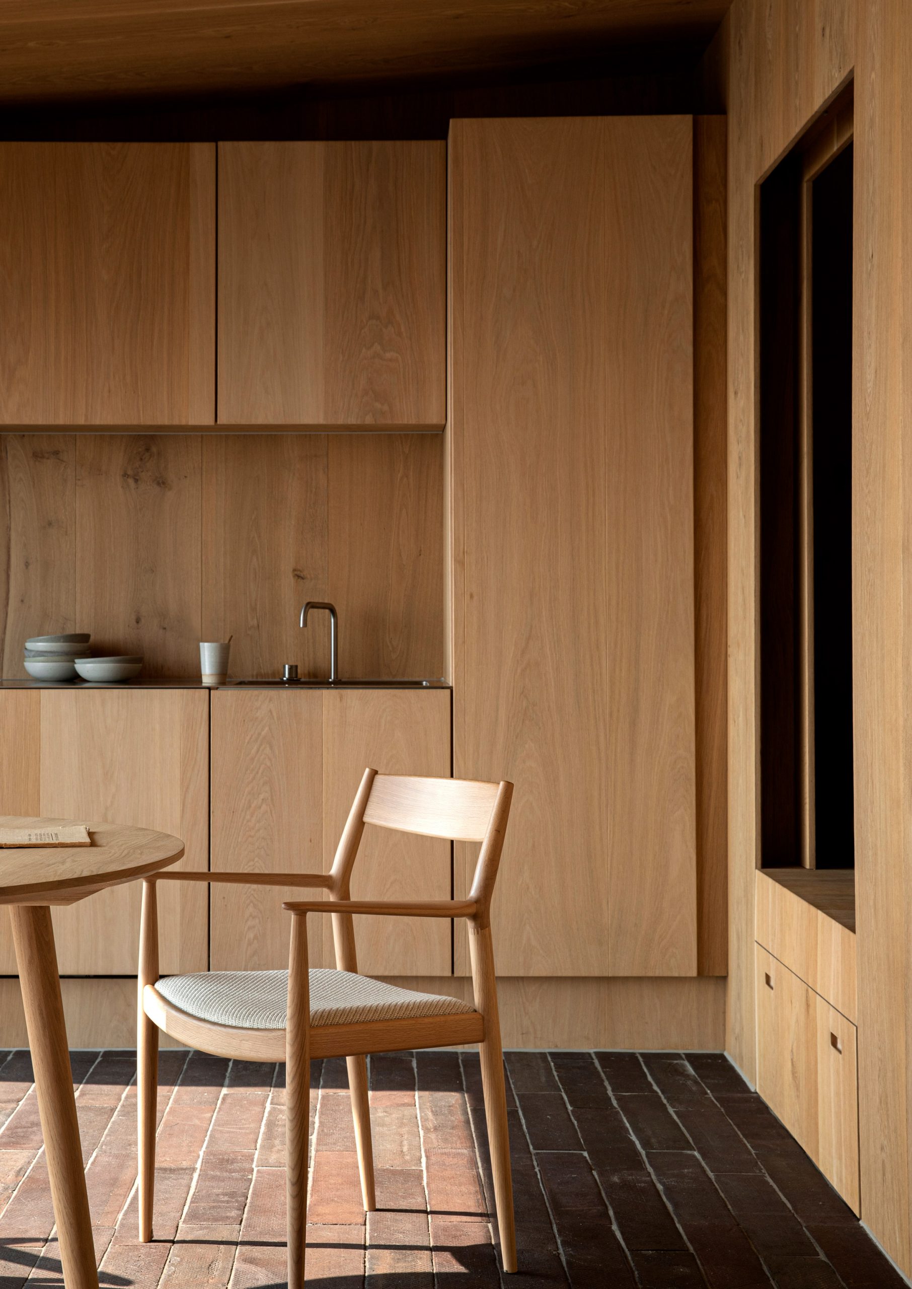 „Norm Architects“ ასევე ავეჯსაც ამზადებს და ამ სახლის ინტერიერშიც შეიტანეს თავიანთი უნიკალური ნივთები, მათ შორის მაგიდა “Koku” და სანათი „Hashira Floor Lamp”.