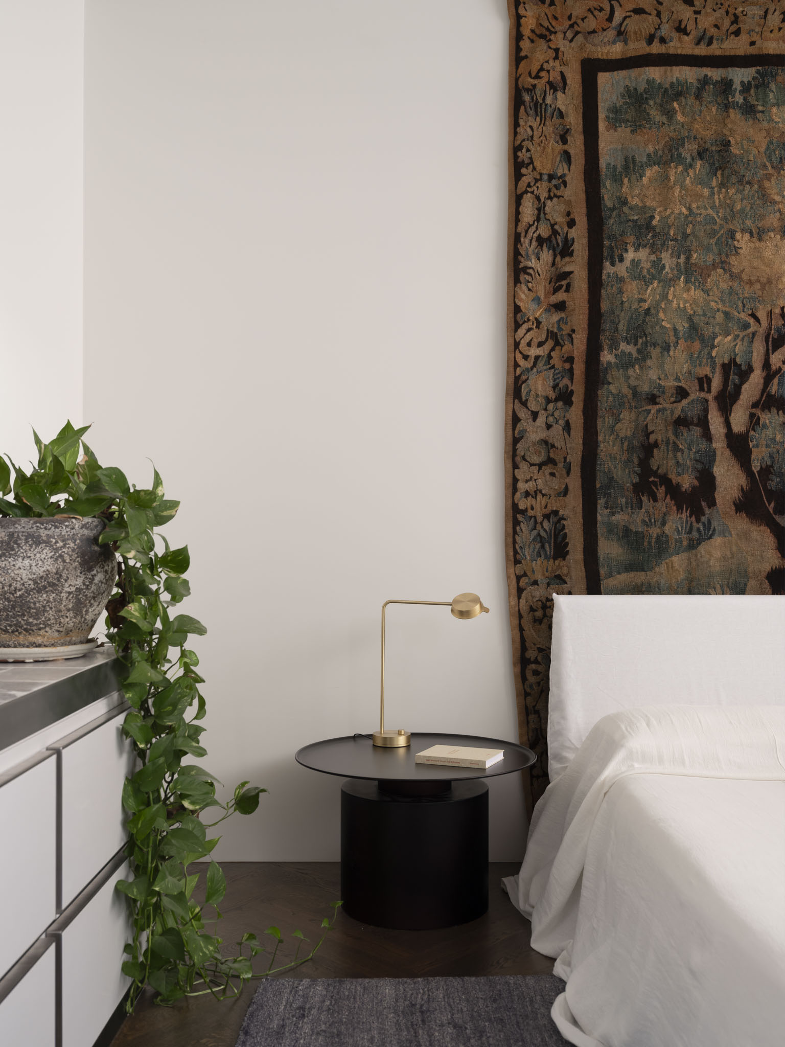 საძინებელი მინიმალისტურია, თუმცა მაქსიმალურად კომფორტული — დახვეწილი ტექსტილები, რბილი განათება და ბუნებრივი ხის დეტალები ქმნის ნამდვილ პირად თავშესაფარს. აბაზანაში გამოყენებულია ტექსტურიანი კერამიკა, ქვის ნიჟარები და მოშავო მეტალის დეტალები, რაც ხაზს უსვამს სივრცის თანამედროვე ელეგანტურობას.