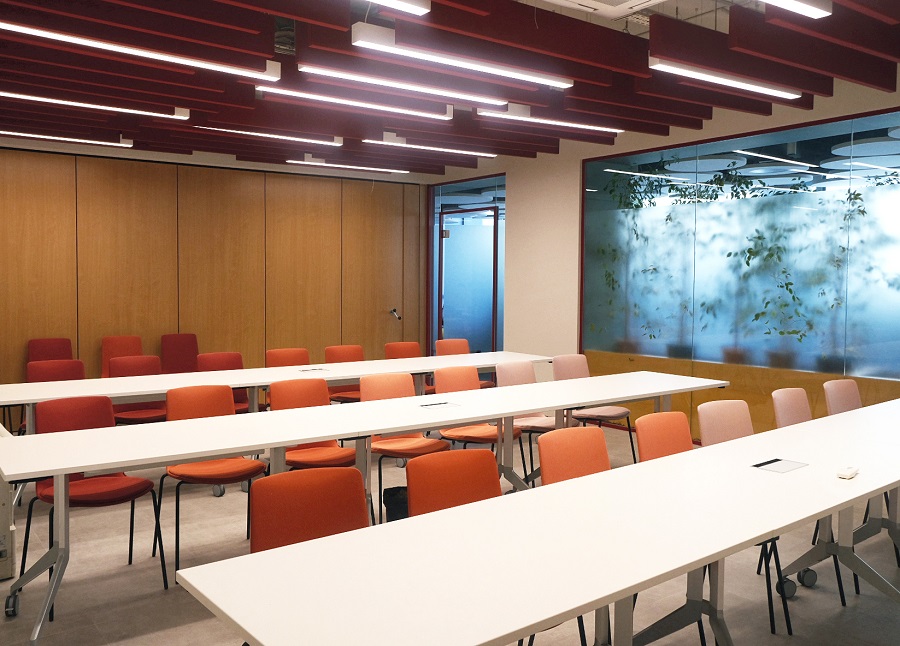 აღსანიშნავია, რომ ოფისის ყველა სივრცე ერთმანეთთან არის დაკავშირებული. საკონფერენციო დარბაზებში არსებული ტიხრებიც კი მოძრავია, რაც საჭიროების შემთხვევაში, რამდენიმე ზონის გაერთიანებისა და ახალი დიდი სივრცის მიღების შესაძლებლობას იძლევა. ჭერები და მაგიდები სრულად დაფარულია აკუსტიკური პანელებით, რაც მიუხედავად გეგმის გახსნილობისა, პრივატულობის შეგრძნებას გვიტოვებს.
