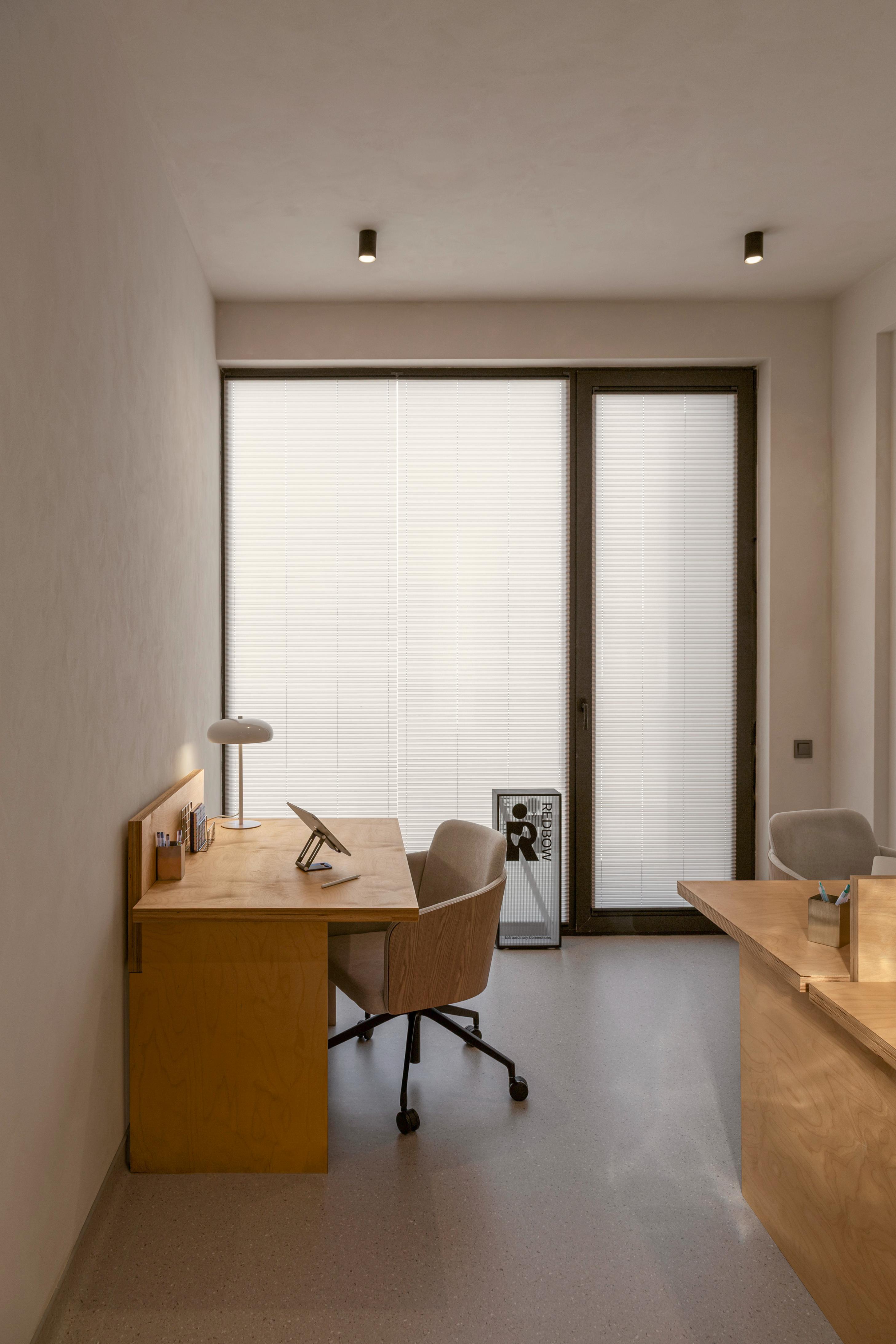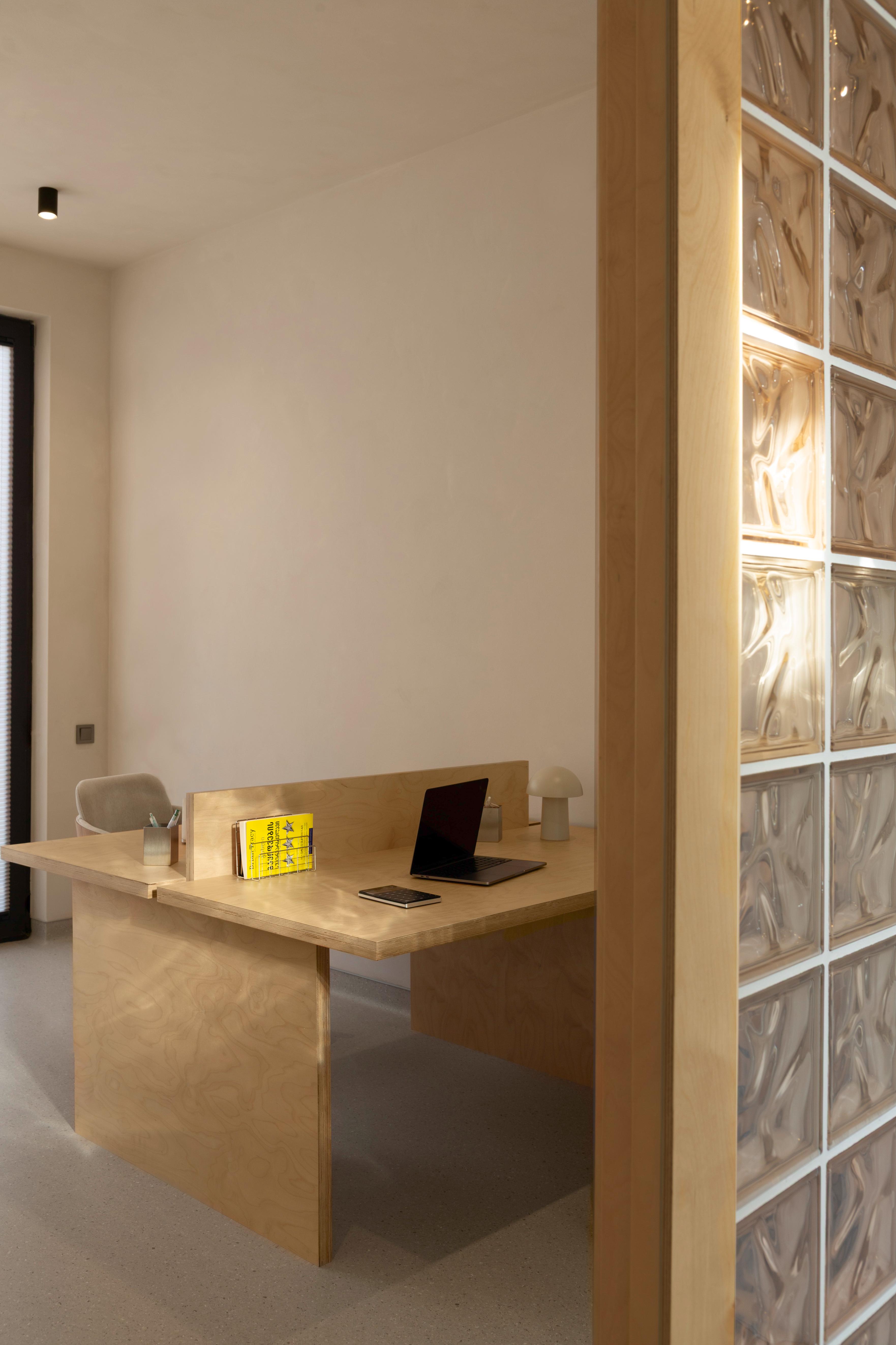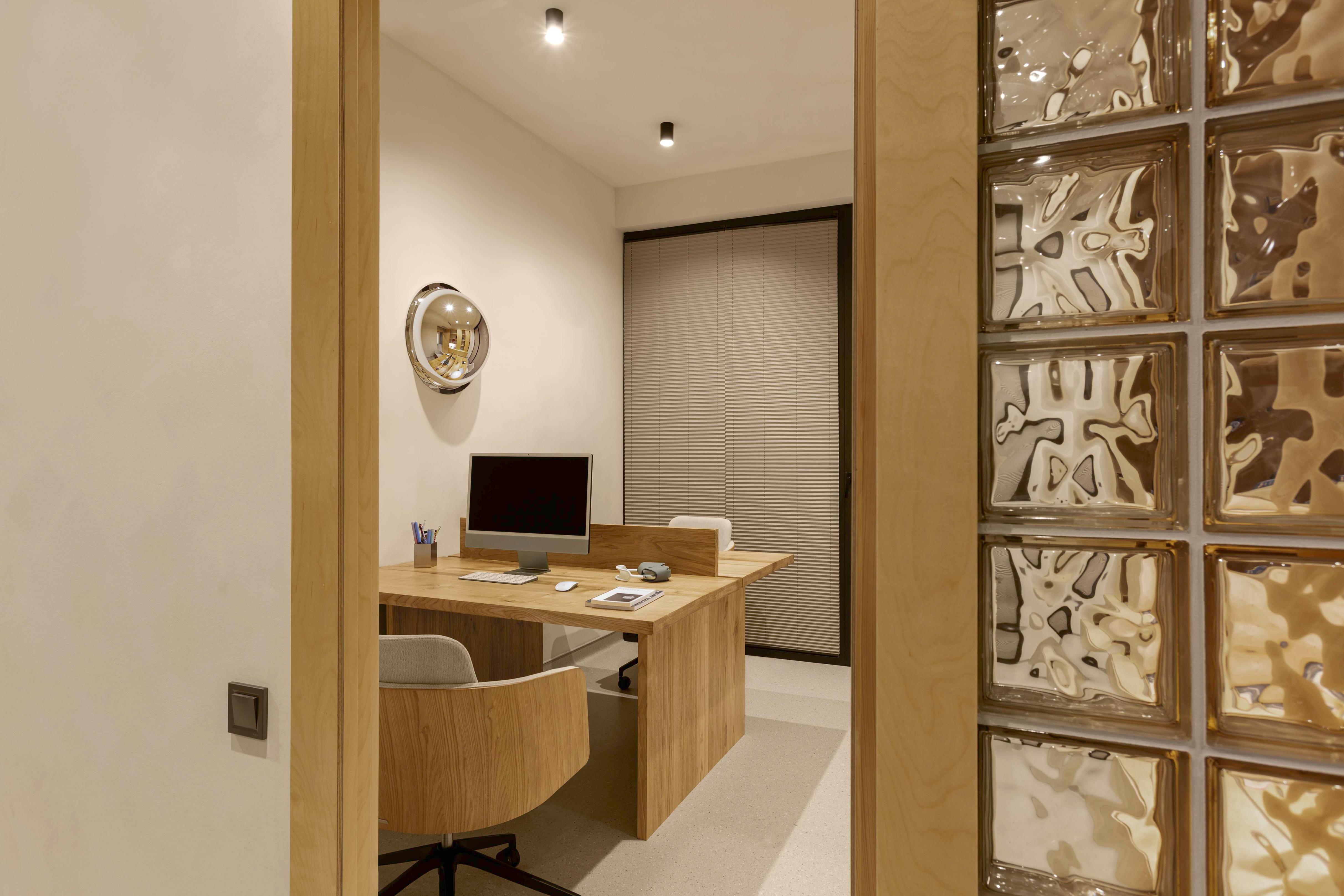 სამუშაო სივრცეები გადაწყვეტილია თბილ ტონებში, თუმცა ისე, რომ არ დაიკარგოს ოფისისთვის დამახასიათებელი ორგანიზებული და პროფესიული ატმოსფერო.