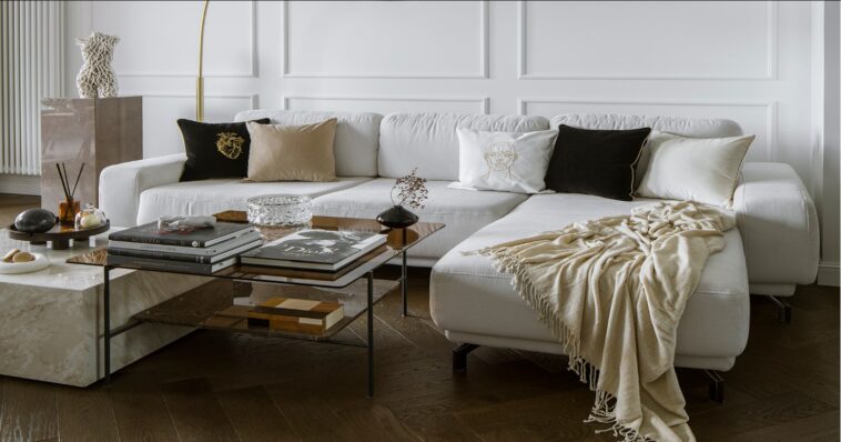 მფლობელს ასევე ელეგანტურობისა და არისტოკრატიულობის, მყუდრო საშინაო ატმოსფეროსთან შეთავსებაც სურდა. ამიტომაც ბინა თბილ, ჩამქრალ ფერებშია შესრულებული: ყავისფერი და ბეჟი ელფერები აქ თეთრ და ოქროსფერ აქცენტებთანაა შერწყმული.
