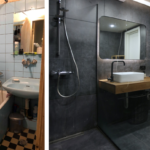 სამზარეულოს უჩვეულო სამკუთხა ფორმა, რომელიც კუთხეში პატარა ფანჯრით ბოლოვდება, დიზაინერისათვის სერიოზული პრობლემა იყო. ამ სივრცის განათებისა და ვიზუალური ზრდისთვის აქ დიდი სარკე დაკიდეს. ამ მარტივმა გადაწყვეტილებამ სამზარეულო კუთხე თითქმის ორჯერ გაზარდა და გაცილებით ნათელი გახადა.
