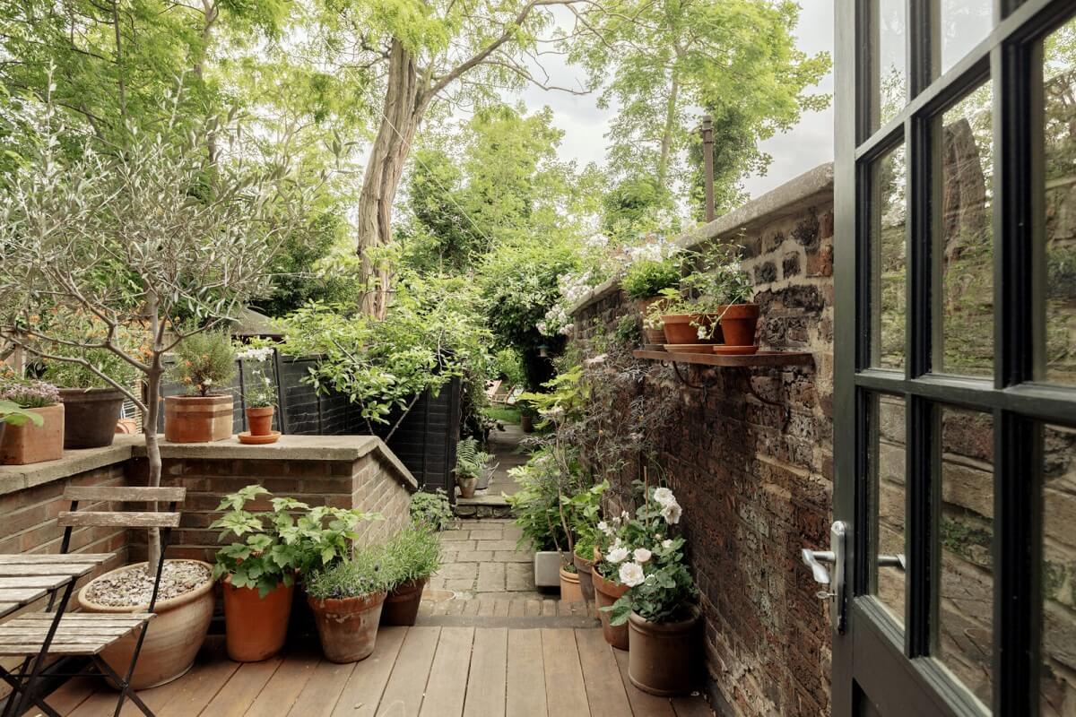 სამზარეულოდან გამავალი მინის პანელიან კარს ამაღლებულ შიდა ეზომდე მივყავართ. მის მიღმა არის კერძო ბაღი სასადილო ზონისკენ მიმავალი ვიწრო ბილიკით. აქ პატარა ბაღის სახლსაც შეხვდებით.