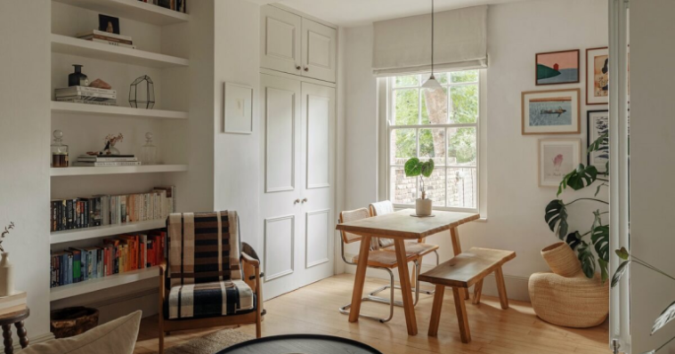 ლონდონში მდებარე ეს მშვენიერი ერთოთახიანი ბინა საგულდაგულოდ არის რესტავრირებული, რათა სახლის ულამაზესი პერიოდის მახასიათებლები თვალსაჩინოდ იყოს წარმოჩენილი.