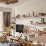 მინისგან დამზადებული ან კედლების ფერთან შეხამებული ლაკონიური თაროები თავისთავად მარტივად გამოიყურება და მათი გადატვირთვისგან თავის ასარიდებლად ნივთები დეკორატიულ კალათებში ან ორგანიზატორებში მოათავსეთ.