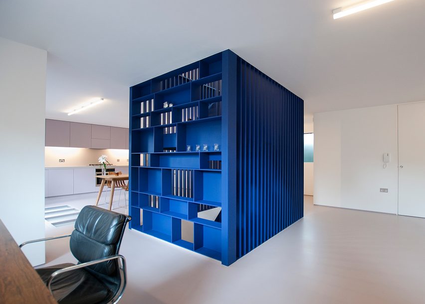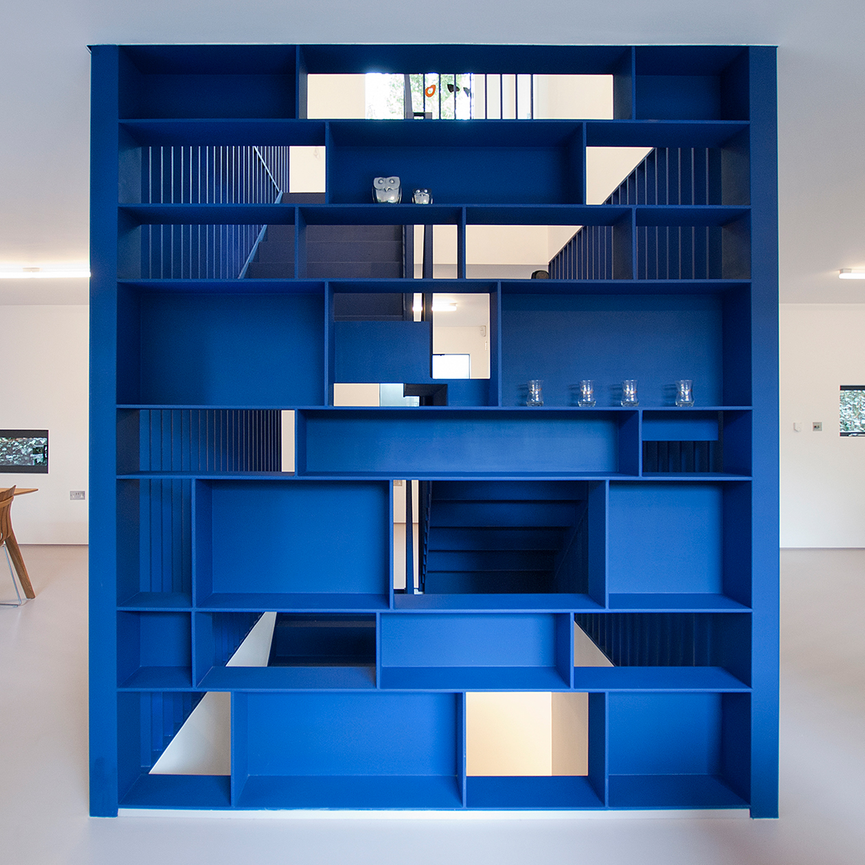 სტუდია RA Projects–მა შექმნა ლურჯი ფოლადის კიბე, რომელიც ლონდონის ამ სახლის მინიმალისტურ ინტერიერთან საუცხოო კონტრასტს ქმნის. თეთრ სახლში მთელი აქცენტი ლურჯი ფერისკენაა მიმართული და ამას ემატება საინტერესო გეომეტრიული ფორმები, რაც საბოლოო ჯამში, მართლაც უნიკალურ გარემოს ქმნის.