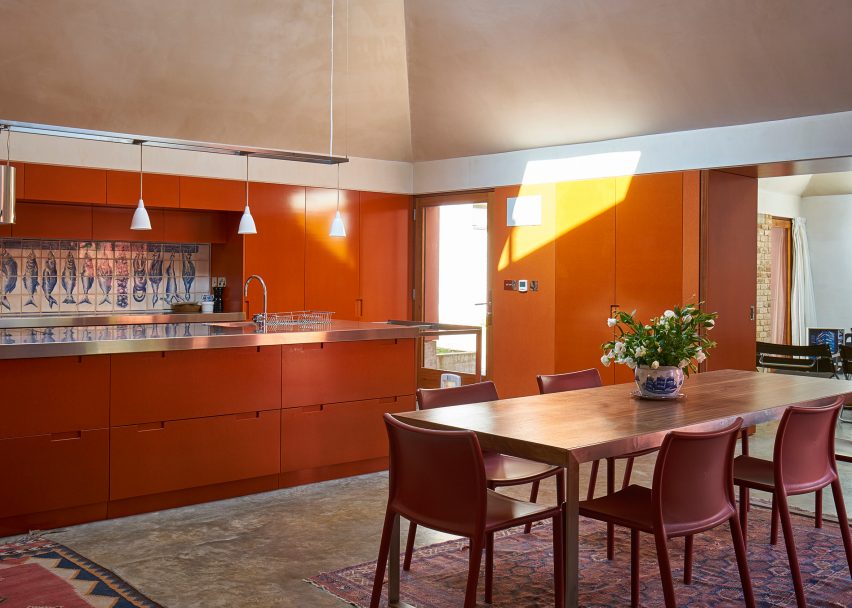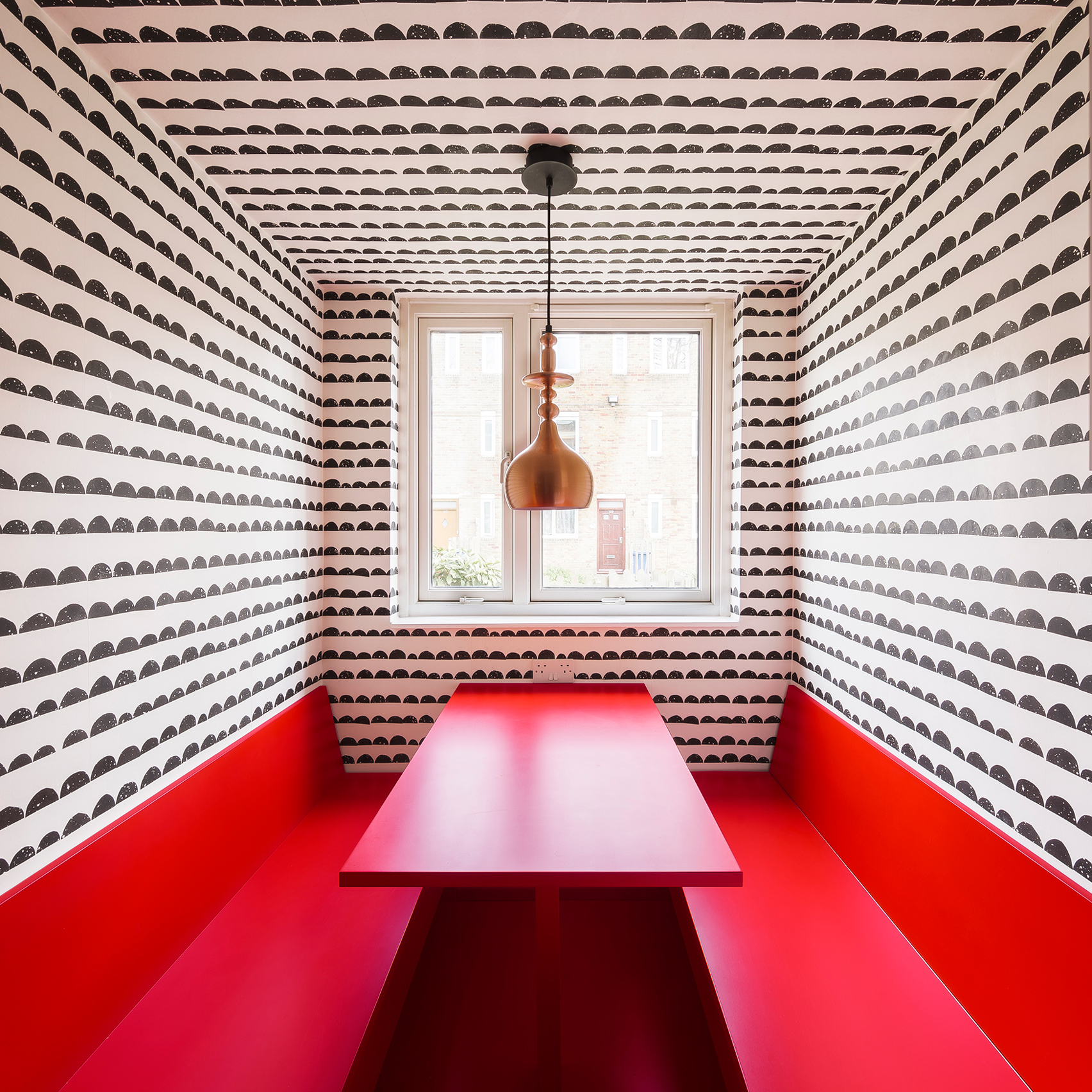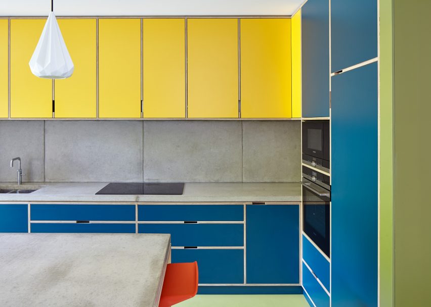 ლურჯი, მწვანე და ყვითელი ოთხკუთხა პანელებით სავსე სამზარეულო ლონდონის სახლის ნაწილია, რომელიც მე-19 საუკუნეშია აშენებული. გარდა ამისა, სახლში არსებული კიბეც სტაფილოსფერ ფერშია შეღებილი. ასეთი დეტალებით სახლის ინტერიერი ენერგიული და გამორჩეულია.