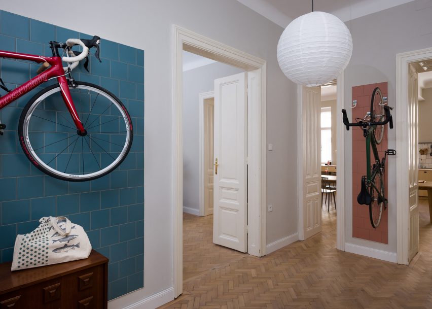 სლოვენიურმა სტუდიამ  ფერადი ფილები ღია თაროების ხაზგასასმელად გამოიყენა. ამ შემთხვევაში დიზაინერებმა  ფუნქციური დატვირთვის ადგილი გამოკვეთეს.  სამზარეულოს კედელზე პასტელური მწვანე ფერის ფილები გვხვდება, დერეფანში, ველოსიპედების შესანახი ადგილის კედლები ლურჯი და ვარდისფერი ფილებით არის მოპირკეთებული.
