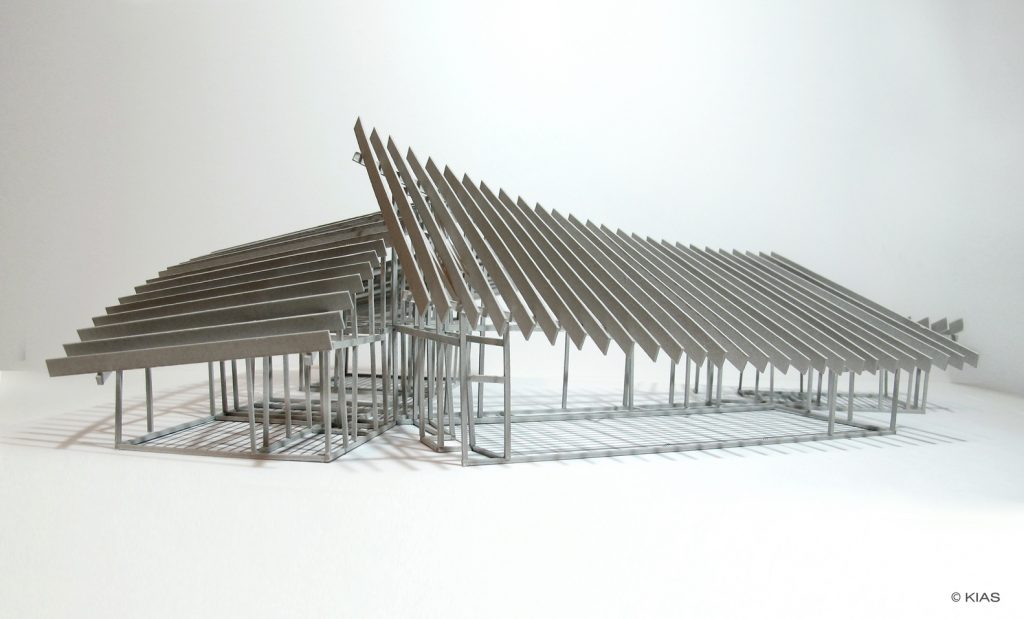 სახურავის ჩაზნექილი და ამოწეული ნაწილები შიდა სივრცეში ჭკვიანურადაა გადანაწილებული. მაღალი გადახურვა სახლის მისაღებ და საერთო სივრცეში გვხვდება, ხოლო დაბალი – საძინებლების ნაწილში.