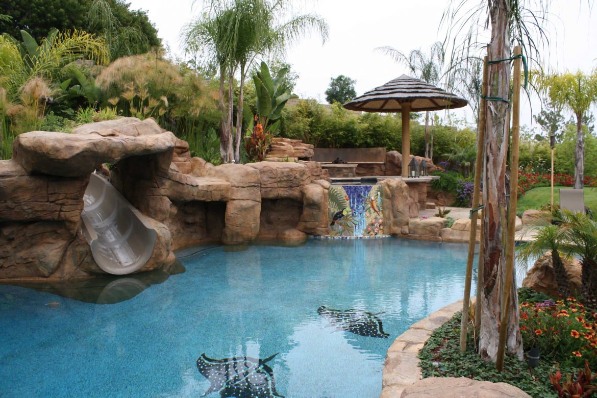 აუზებისათვის კიდევ ერთი პოპულარული სტილი – ტროპიკულია. ამ სტილში გაფორმებული აუზები, ყველაზე მეტად უწყობს ხელს მოდუნებასა და დასვენებას. ნებისმიერ ეზოში ეგზოტიკური კუნძულის ან ოაზისის ატმოსფერო შემოაქვს. ტროპიკული სტილისთვის დამახასიათებელია თავისუფალი ფორმა და მოზაიკა, ტროპიკული მცენარეები, პალმები, ასევე კომპოზიციები ქვებისგან და ჩანჩქერებისგან.