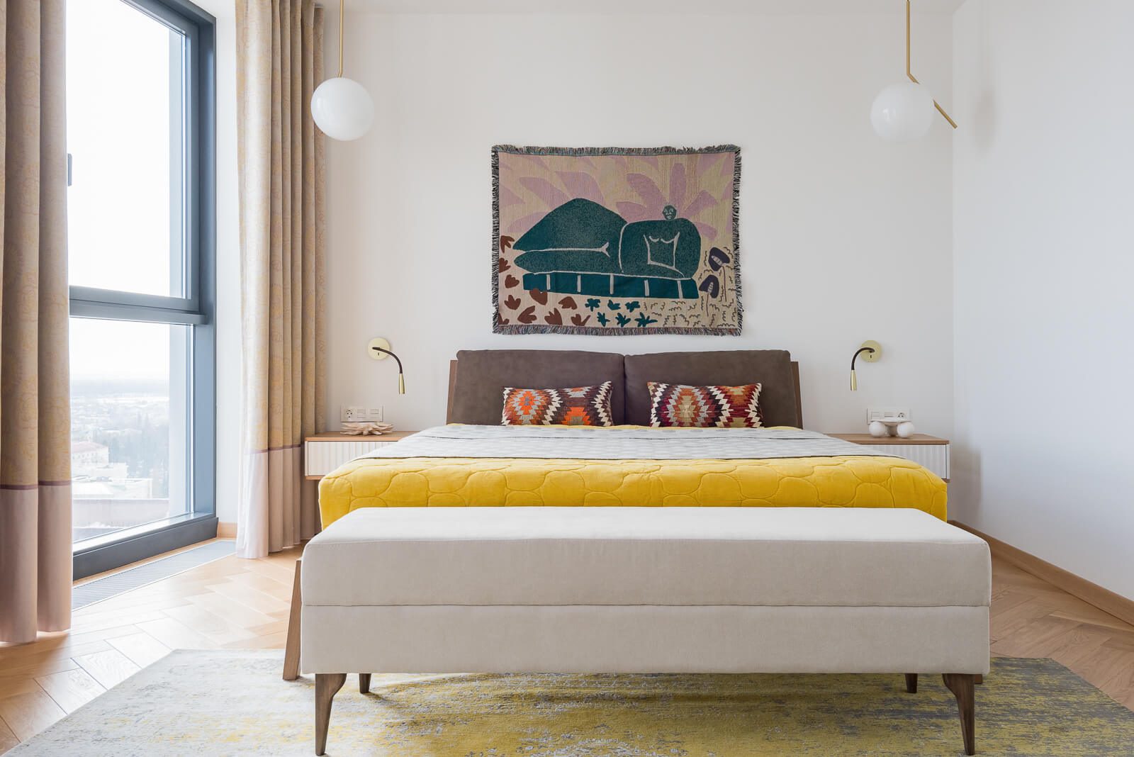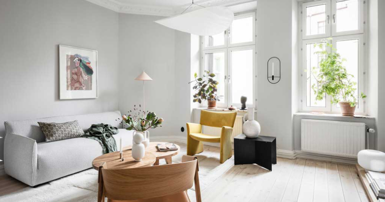ნათელი, მხიარული ყვითელი და მოკრძალებული ღია თეთრი — უფრო სრულყოფილი შეხამება ძნელი წარმოსადგენია! მართლაც, ყვითლის თეთრთან კომბინაცია მაშინვე დადებით განწყობას ქმნის, ოთახს კი მზის შუქითა და ენერგიით ავსებს. თეთრი იდეალური არჩევანია ყვითლის გადაჭარბებული „ემოციურობის“ დასაბალანსებლად. ამით თავიდან აირიდებთ ფერების აგრესიული, უარყოფით გავლენას ფსიქიკაზე.