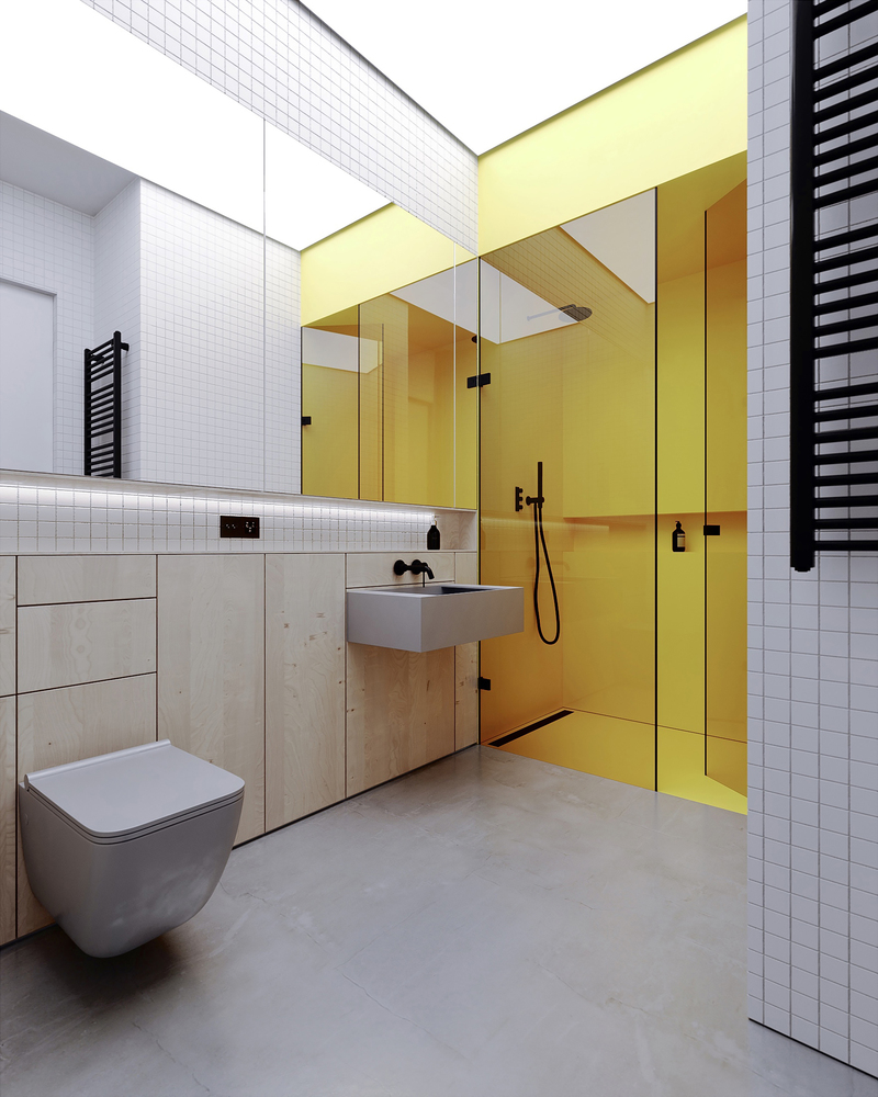 დიზაინერებს ეს კომბინაცია უყვართ, რის გამოც ინტერიერის დიზაინში ხშირად იყენებენ. ეს წყვილი ხშირად გვხვდება სააბაზანოში, სამზარეულოში, საბავშვო ოთახსა და დერეფანში, უფრო იშვიათად — საძინებელში. მიიჩნევა, რომ კაშკაშა ყვითელი ძილისთვის განკუთვნილი სივრცის გასაფორმებლად საუკეთესო არჩევანი არაა — თუ ფერის შერჩევისას შეცდებით, ან დოზას გადააჭარბებთ, გარემო თქვენში შფოთვასა და გაღიზიანებას გამოიწვევს.