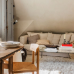 ედინბურგში მდებარე ბინის ამ სამზარეულოში ინტერიერის დიზაინერმა ყვითელი საღებავისა და ღია ლურჯი კარადების ბრწყინვალე კომბინაცია გამოიყენა. მაგიდის გადასაფარებელს ოთახში მეტი სითბო და სიმყუდროვე შემოაქვს.