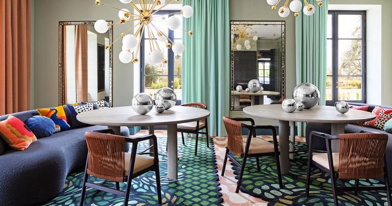 სახლში საკმაოდ უცნაური და ორიგინალური სასადილო სივრცე გვხვდება, სადაც არა ერთიანი მაგიდა, არამედ ორი მრგვალი მაგიდაა. მაგიდების თავზე კი მათივე შესაფერისი, ბურთულებიანი ჭაღები ჰკიდია.
