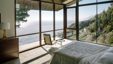 საძინებელიც აგრძელებს სახლის ფერად ხაზს და აქ უკვე გვხვდება მუქი ლურჯი და სალათისფერი თაღი, რომლის მიღმაც მუქი მწვანე საძინებელი იმალება. საძინებლის გვერდით კი განთავსებულია ორი ასევე სალათისფერი რბილი სკამი და კოქტეილის მაგიდა.