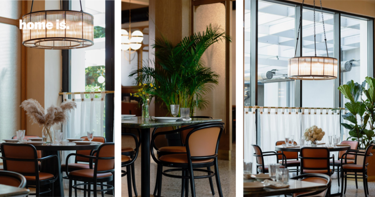 ავეჯი მკვეთრი ფერისაა: ლურჯი დივანი, ნარინჯისფერი სავარძელი, საინტერესო მომწვანო ფერის მარმარილოს მაგიდა. მაგიდები გამოყოფილია ცალკეული განათებებით. დეკორი გამწვანებასაც მოიცავს, რაც კიდევ უფრო მყუდროსა და საინტერესოს ხდის რესტორნის სივრცეს.