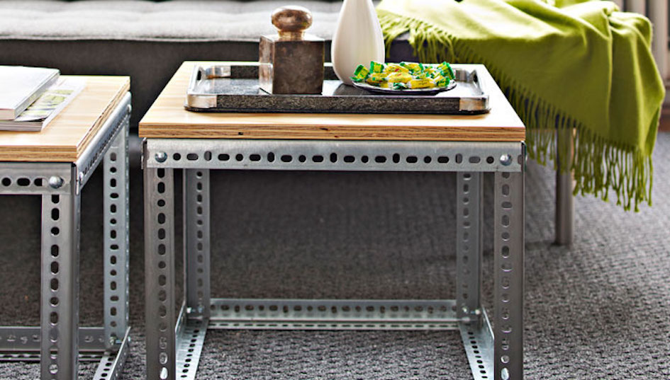 მოხერხებული ჟურნალების მაგიდის შექმნის უფრო მარტივი ვარიანტია საფუძვლის როლში უბრალო პერფორირებული პროფილის გამოყენება, რომლის შეძენას სამშენებლო მაღაზიებში მარტივად შეძლებთ. სამშენებლო წებოს გამოყენებით შექმენით მისგან სწორკუთხა კონსტრუქცია და დააფარეთ ხის დაფა.