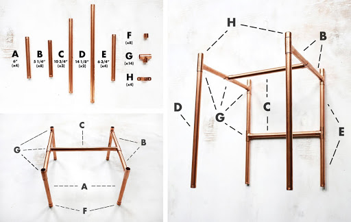 შემდეგი ტიპის ჟურნალების მაგიდისთვის თქვენ დაგჭირდებათ: 6,1 მეტრი სპილენძის მილი დიამეტრით 12,7 მმ. სპილენძის შემაერთებელი – 4 ცალი, სპილენძის ხუფი – 8 ცალი, სპილენძის გადამყვანი – 14 ცალი, ხის დაფა – 30X30 სმ 2 ცალი, წებო და მილის საჭრელი.
