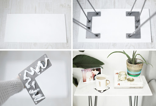 უბრალოდ მიაწებეთ მომავალი ფეხები დაფას და დააცადეთ კარგად გაშრობა. ძალიან მნიშვნელოვანია ამ ელემენტების სიმეტრიული განთავსება, რათა მომავალმა მაგიდამ ზედაპირზე დგომა მყარად შეძლოს. პლასტმასის მაგივრად ზედაპირად შეგიძლიათ ასევე ხის ან მარმარილოს ფილა გამოიყენოთ.